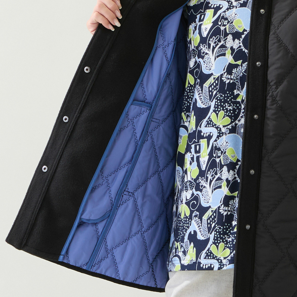 襟端や前端にフェルト生地を組み合わせた異素材使いがお洒落なデザイン。