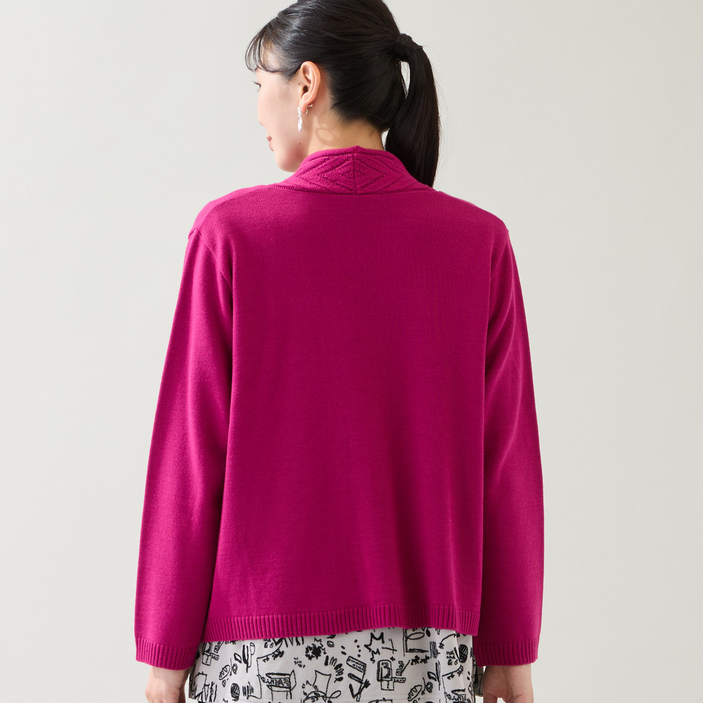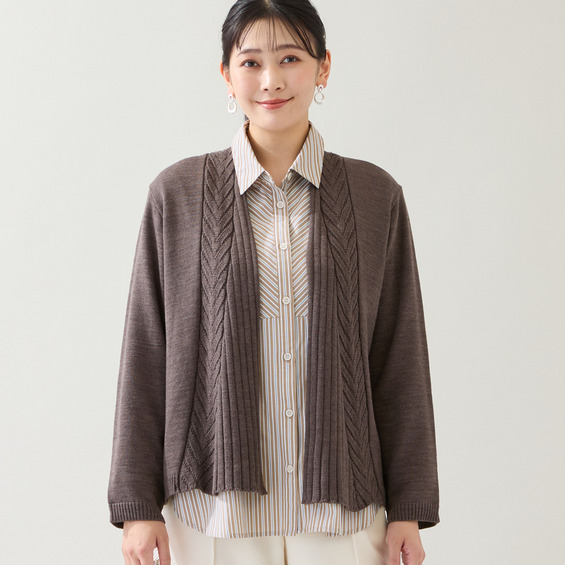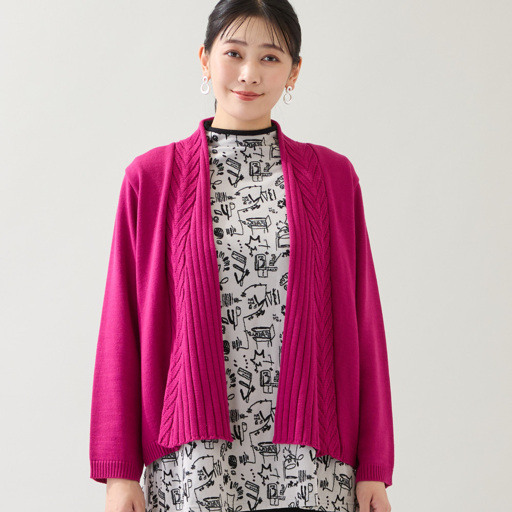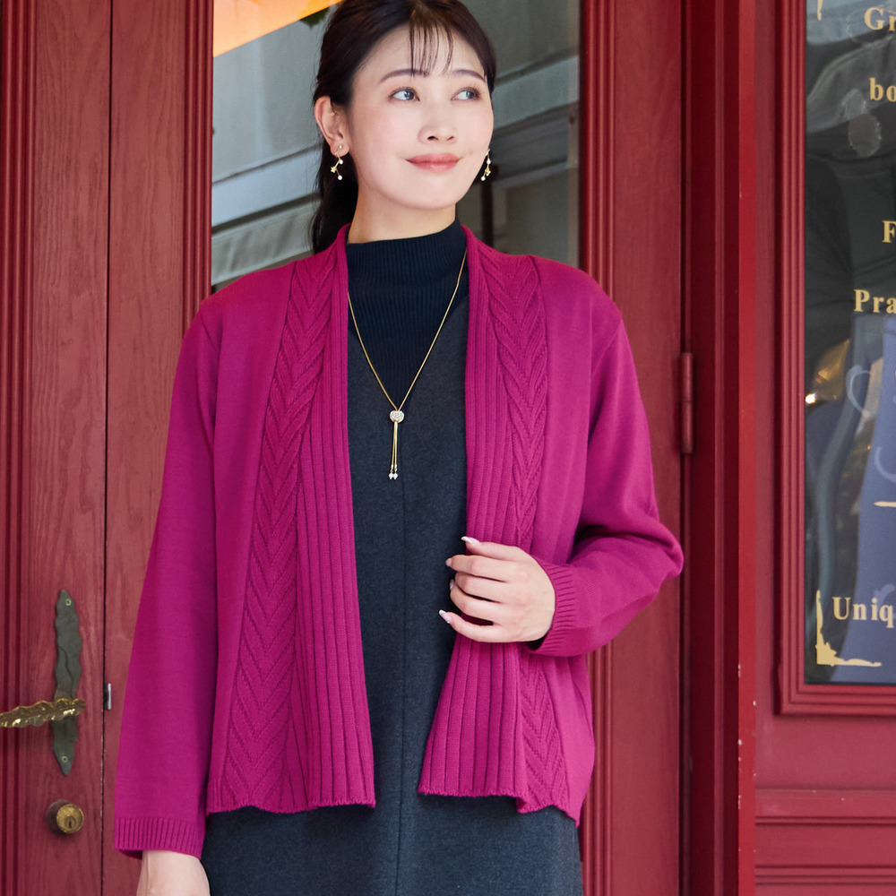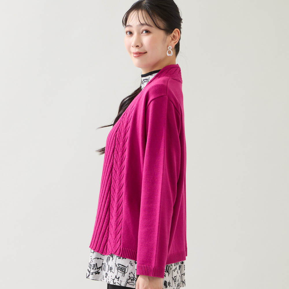 アクリル・ウールの糸を使った暖かみのあるニットカーディガン。