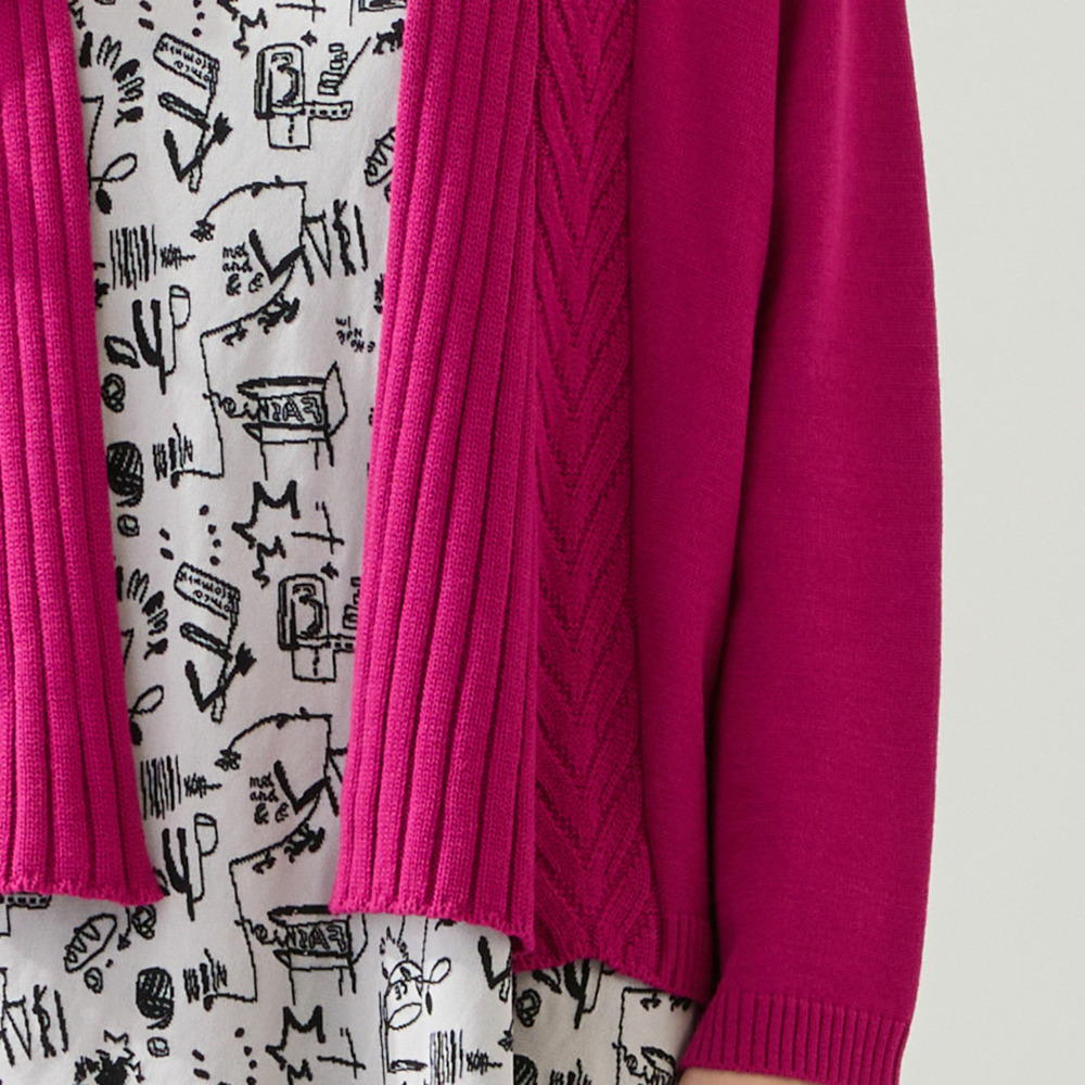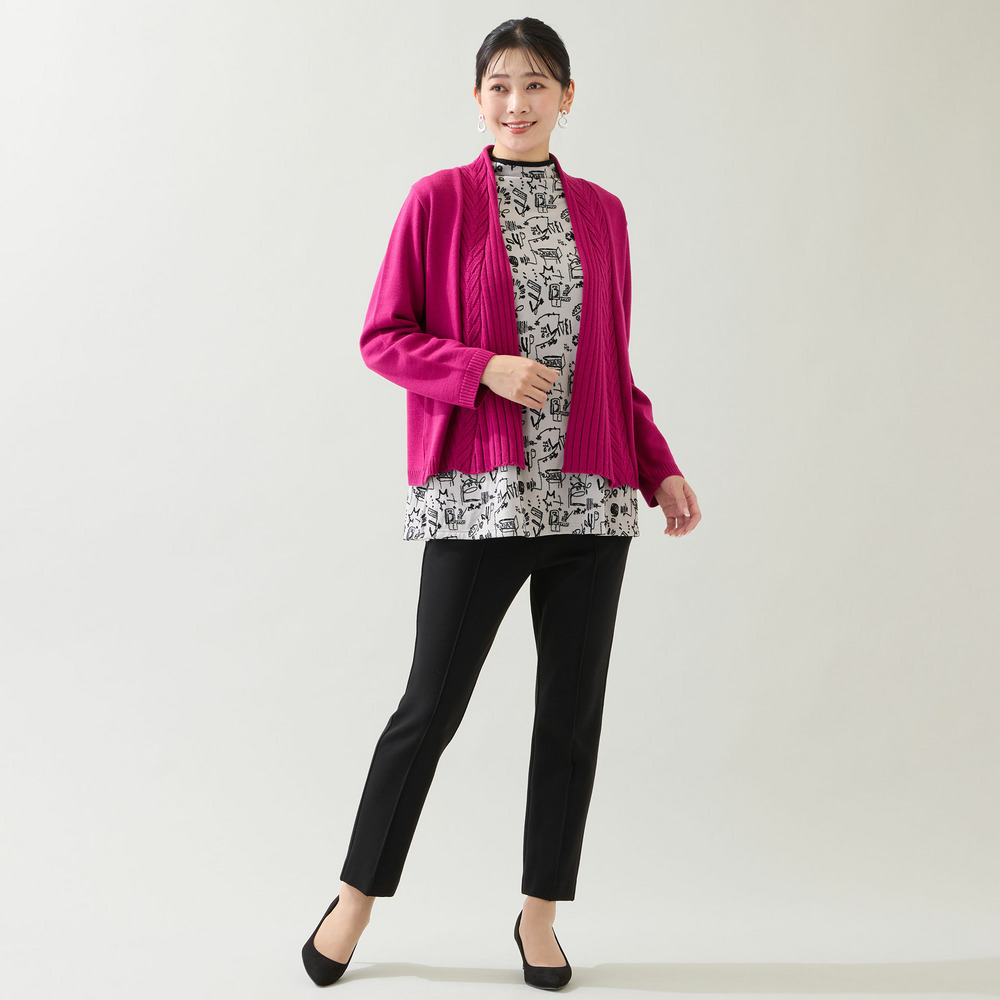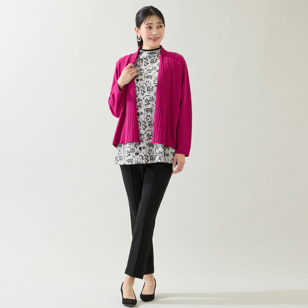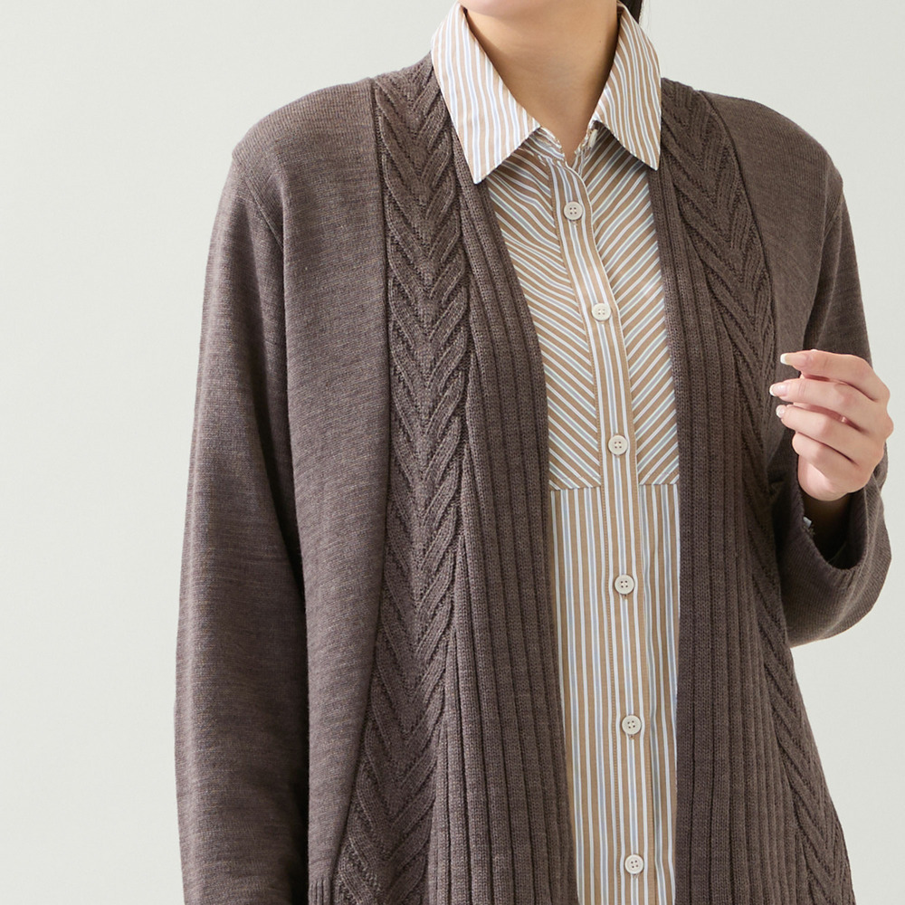 アクリル・ウールの糸を使った暖かみのあるニットカーディガン。