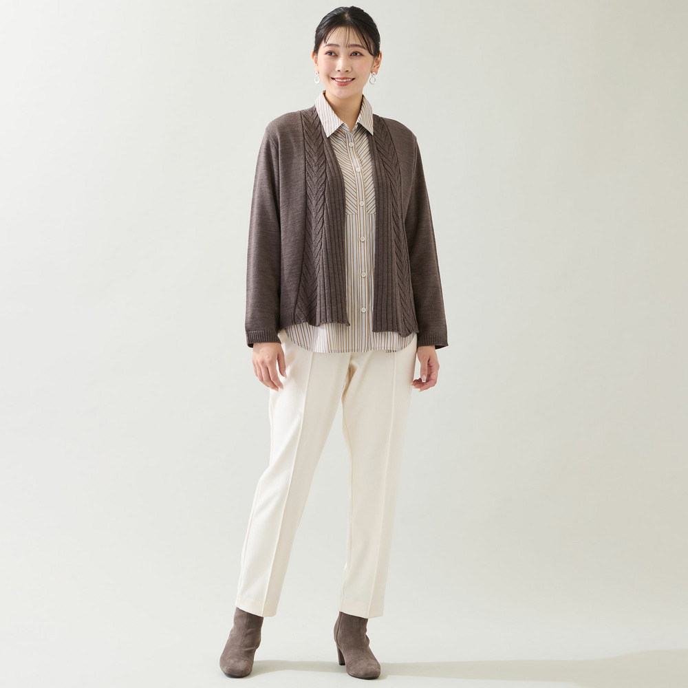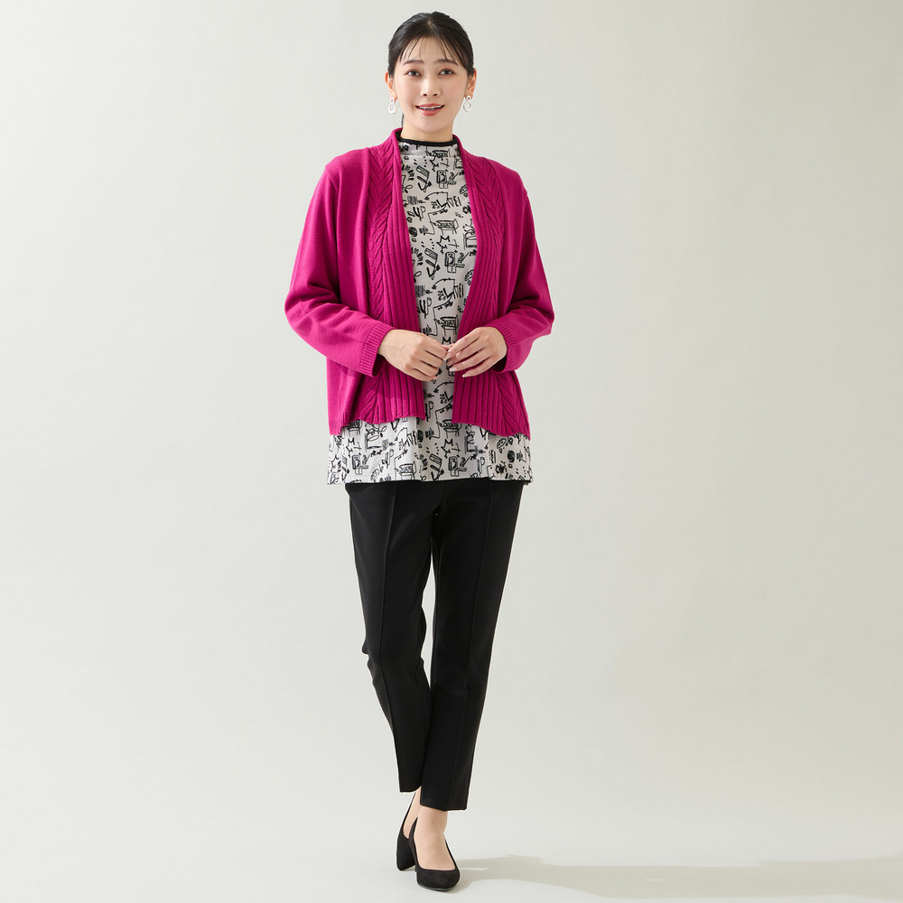 パンツとカジュアルにも、スカートとフェミニンにも楽しめるアイテムです。