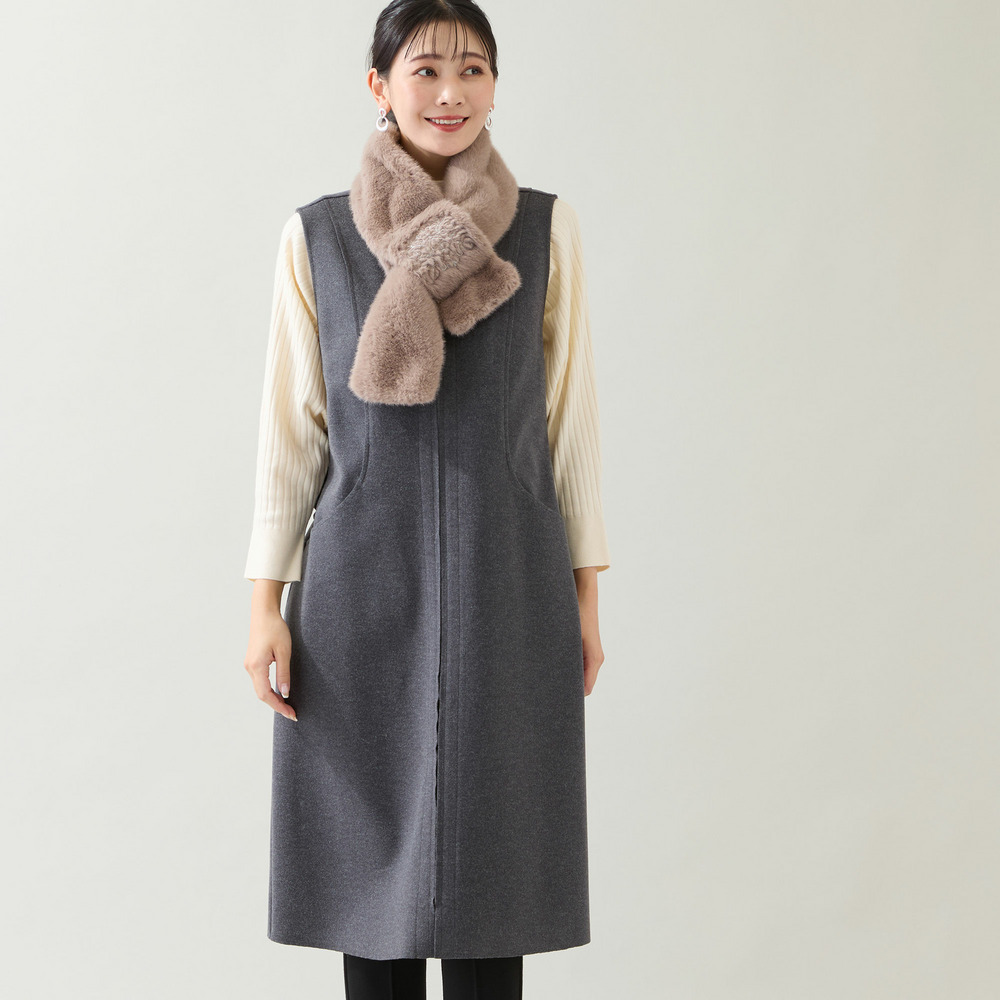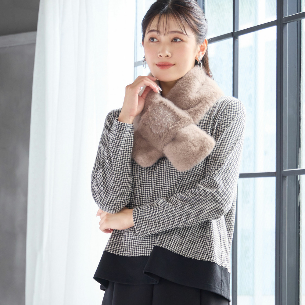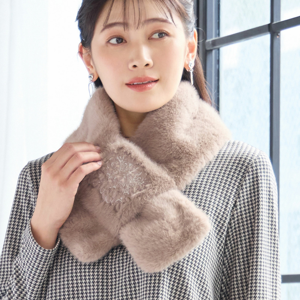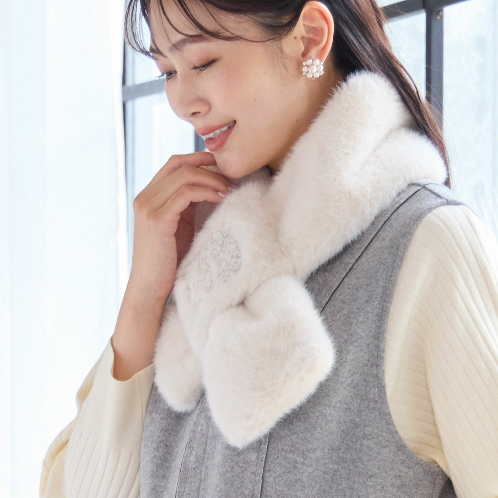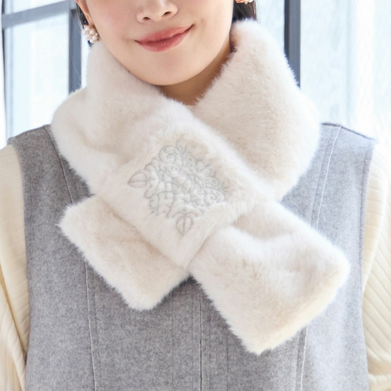 • 【洗える・別注・大きいサイズ】刺繍入りフェイクファーマフラー1