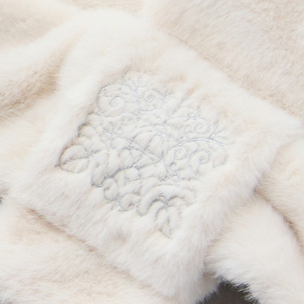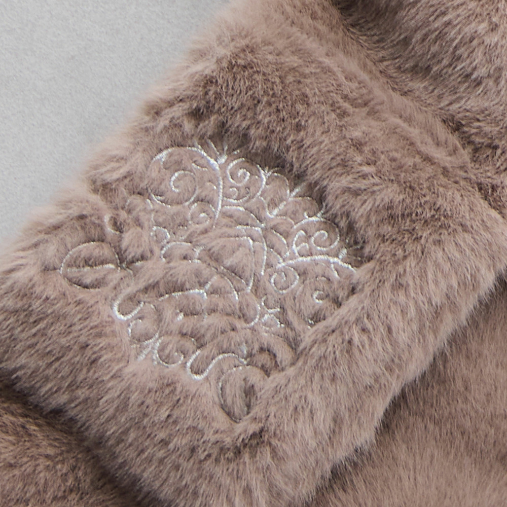 【洗える・別注・大きいサイズ】刺繍入りフェイクファーマフラー