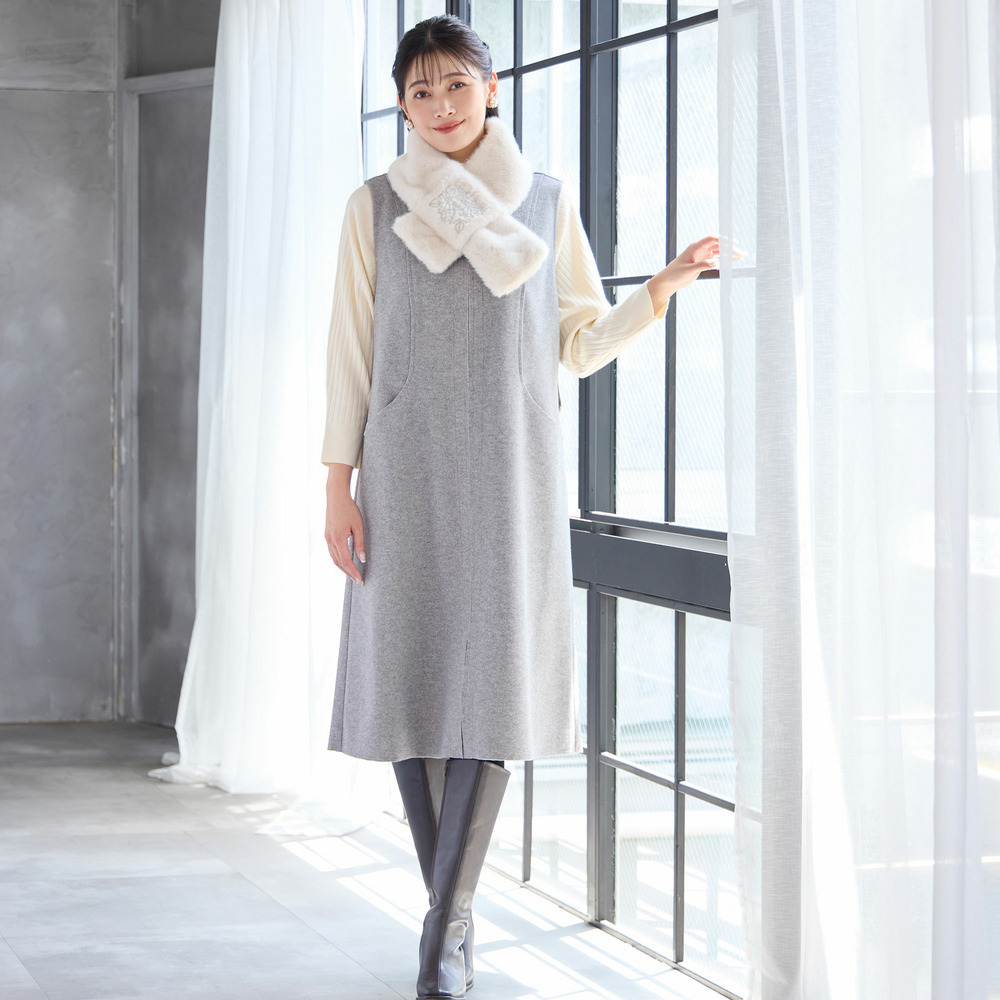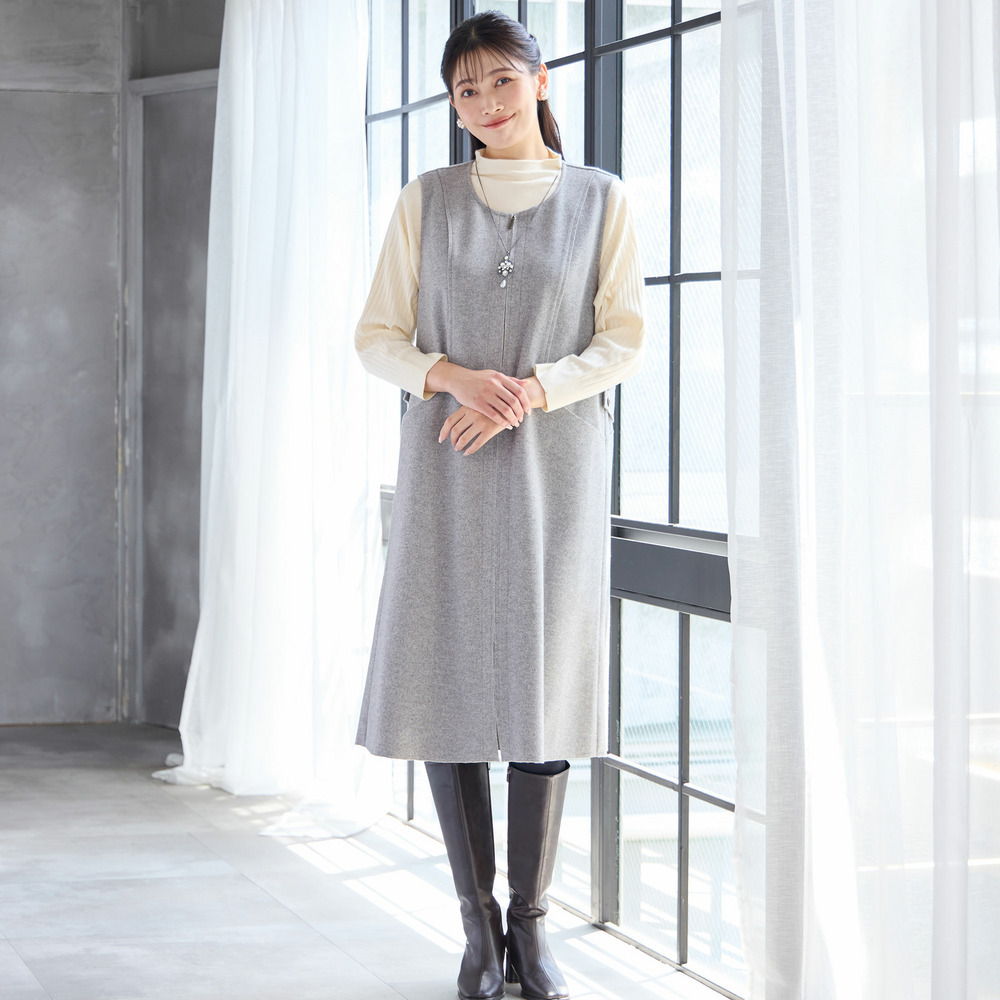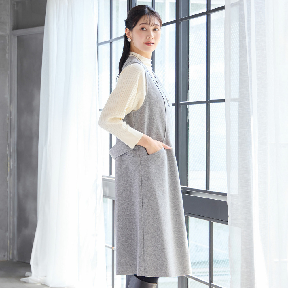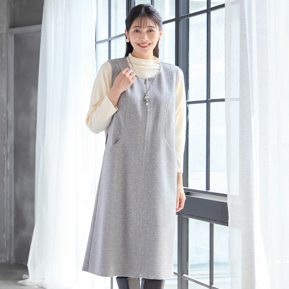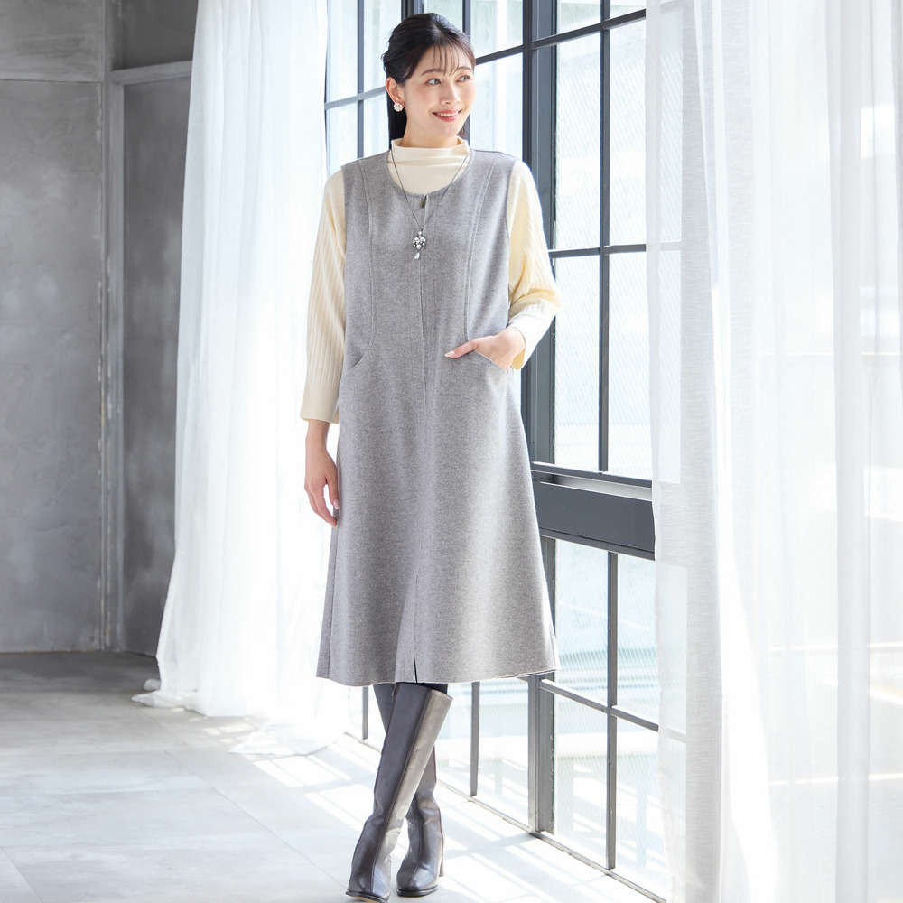 ウールの風合いを表現したストレッチジャージーのジャンパースカートです。