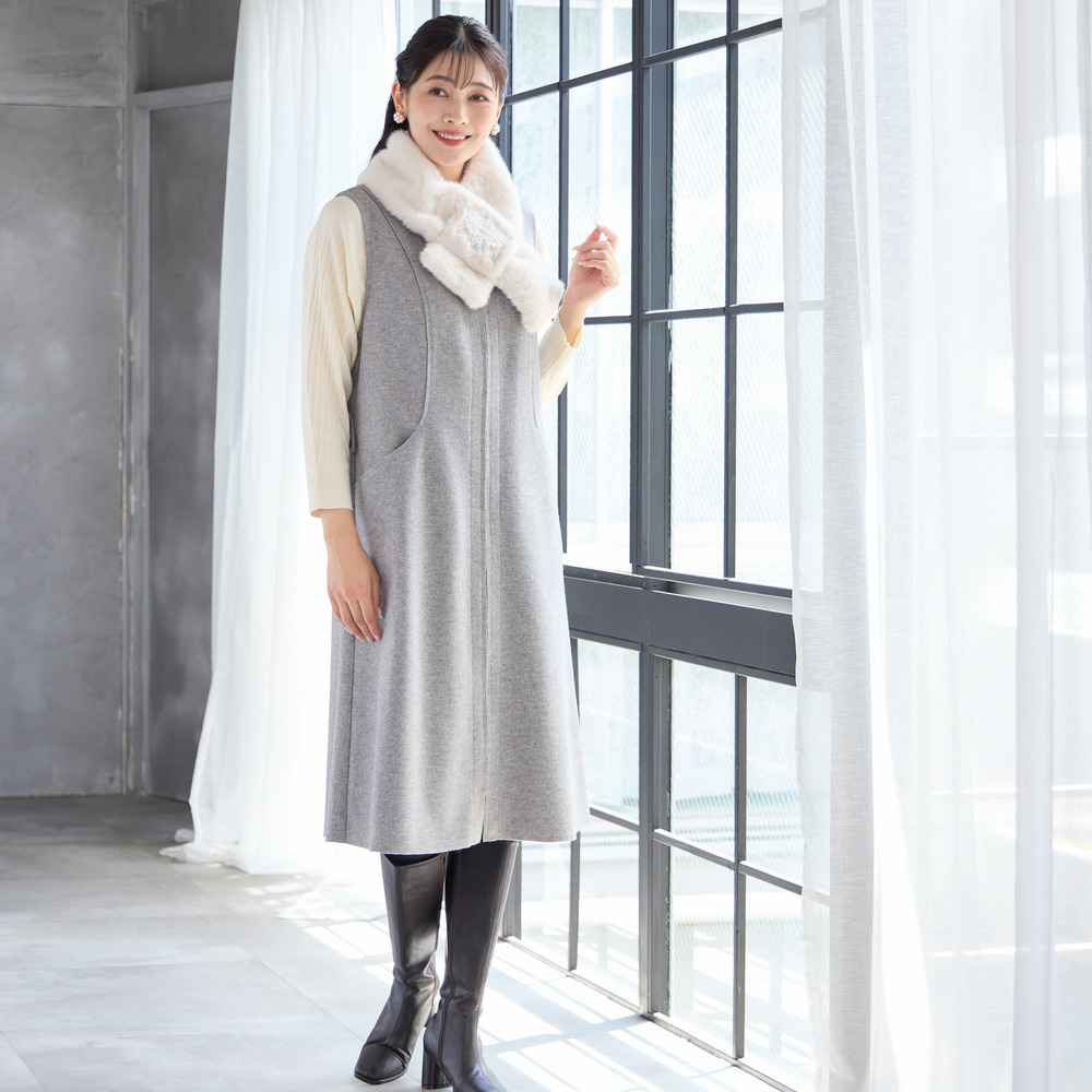 合わせるインナーによってカジュアルにもキレイめにも楽しめる、おすすめのジャンパースカートを是非お楽しみください。
