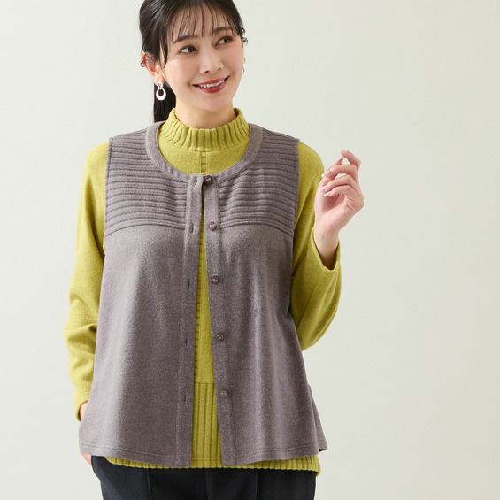 カットソーやチュニック、シャツやワンピースなど様々なトップスとの重ね着をお楽しみいただけます。