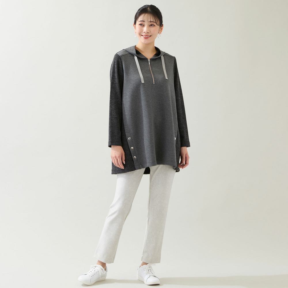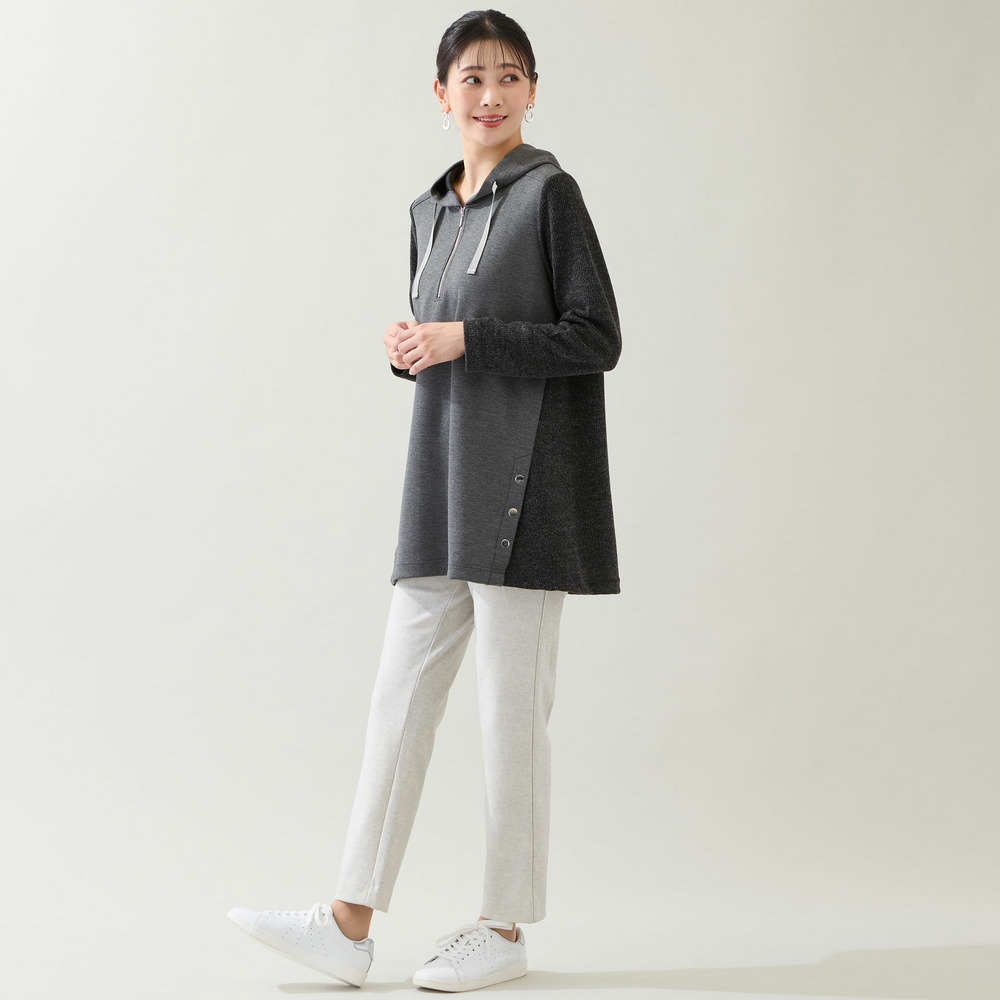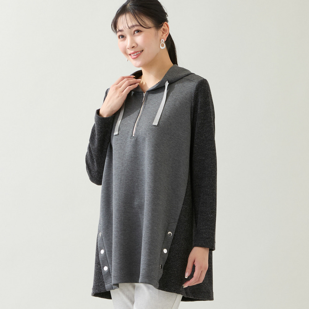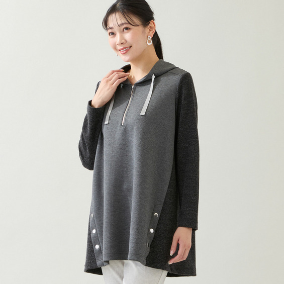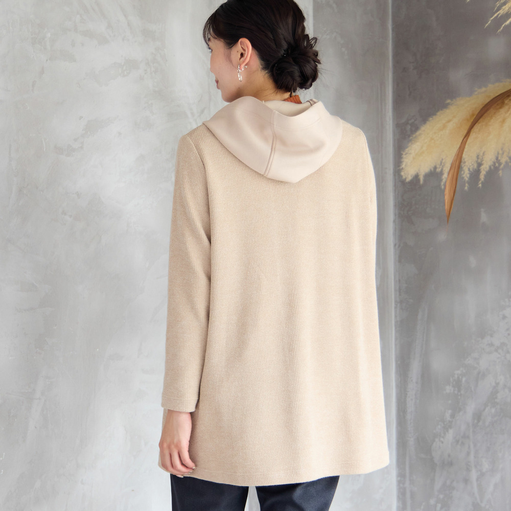 お尻がすっぽりと隠れるチュニック丈のフーディー。