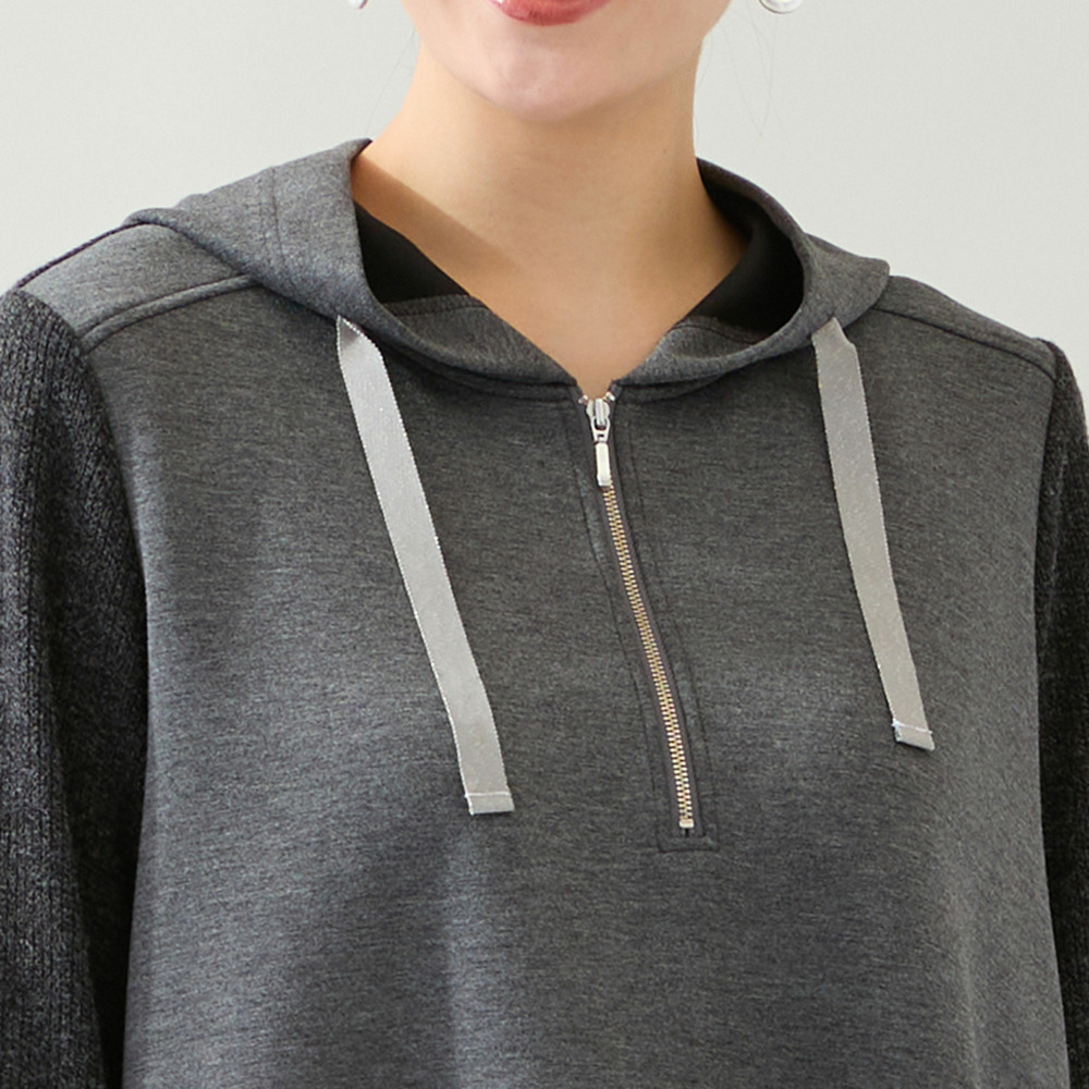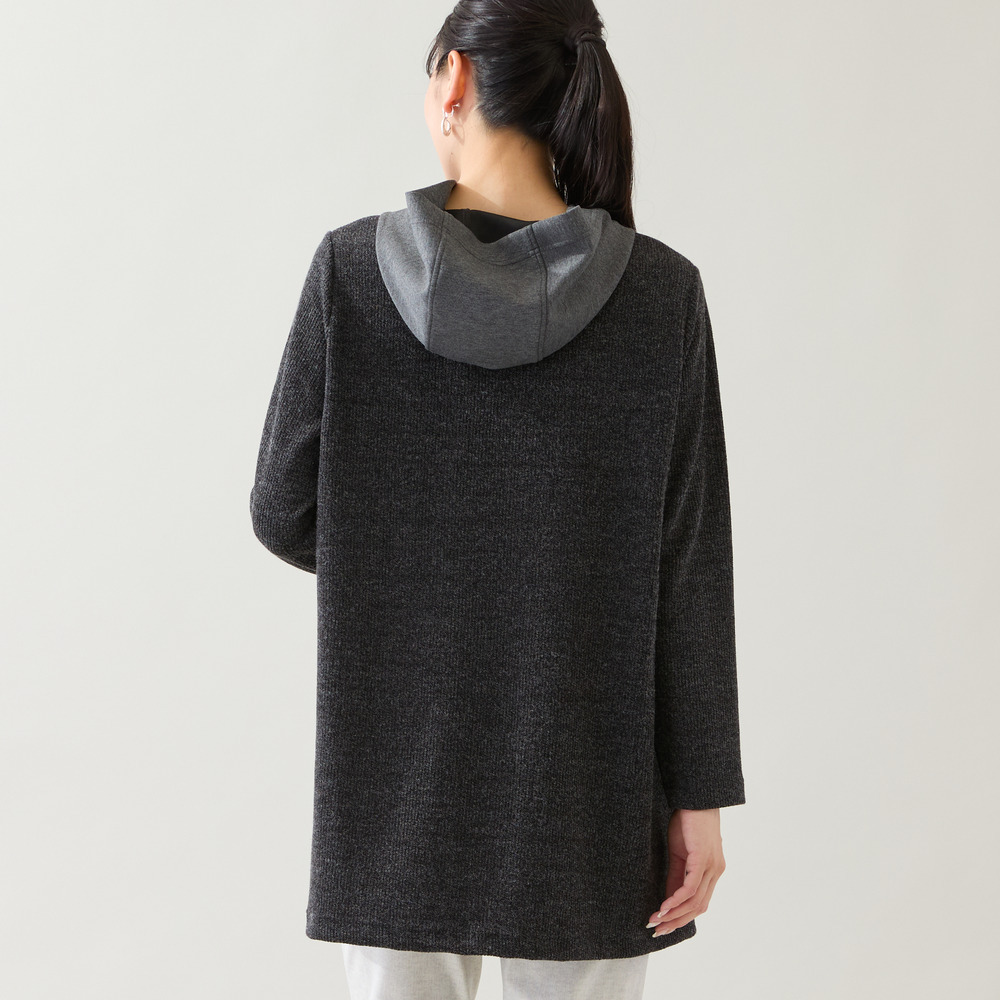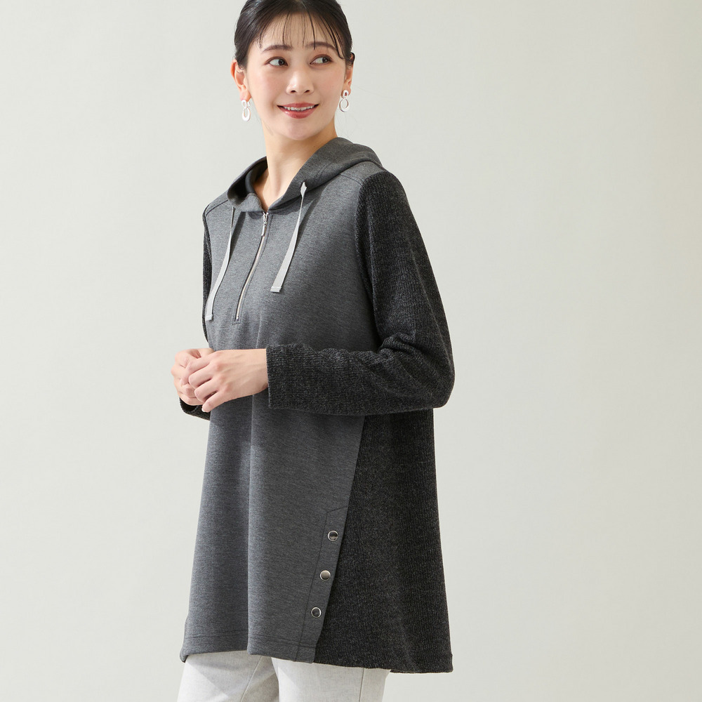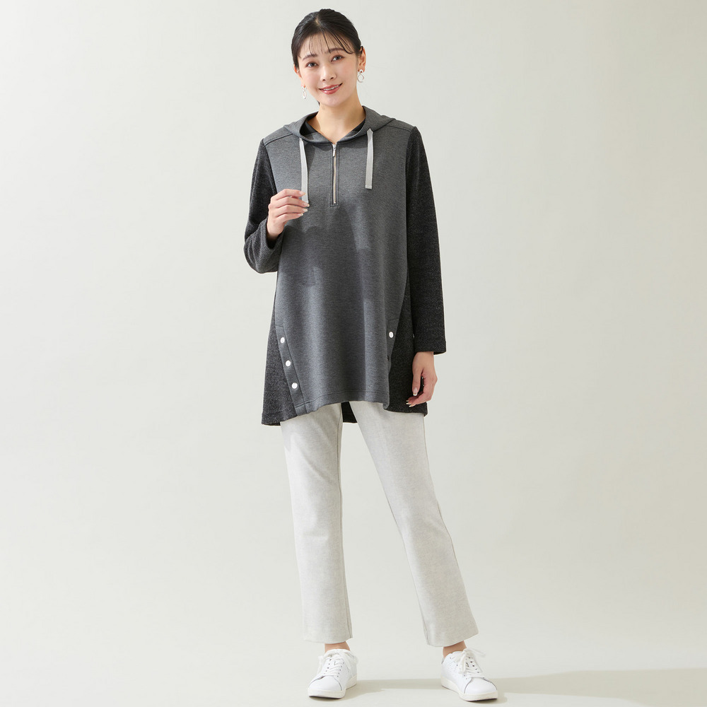 お尻がすっぽりと隠れるチュニック丈のフーディー。