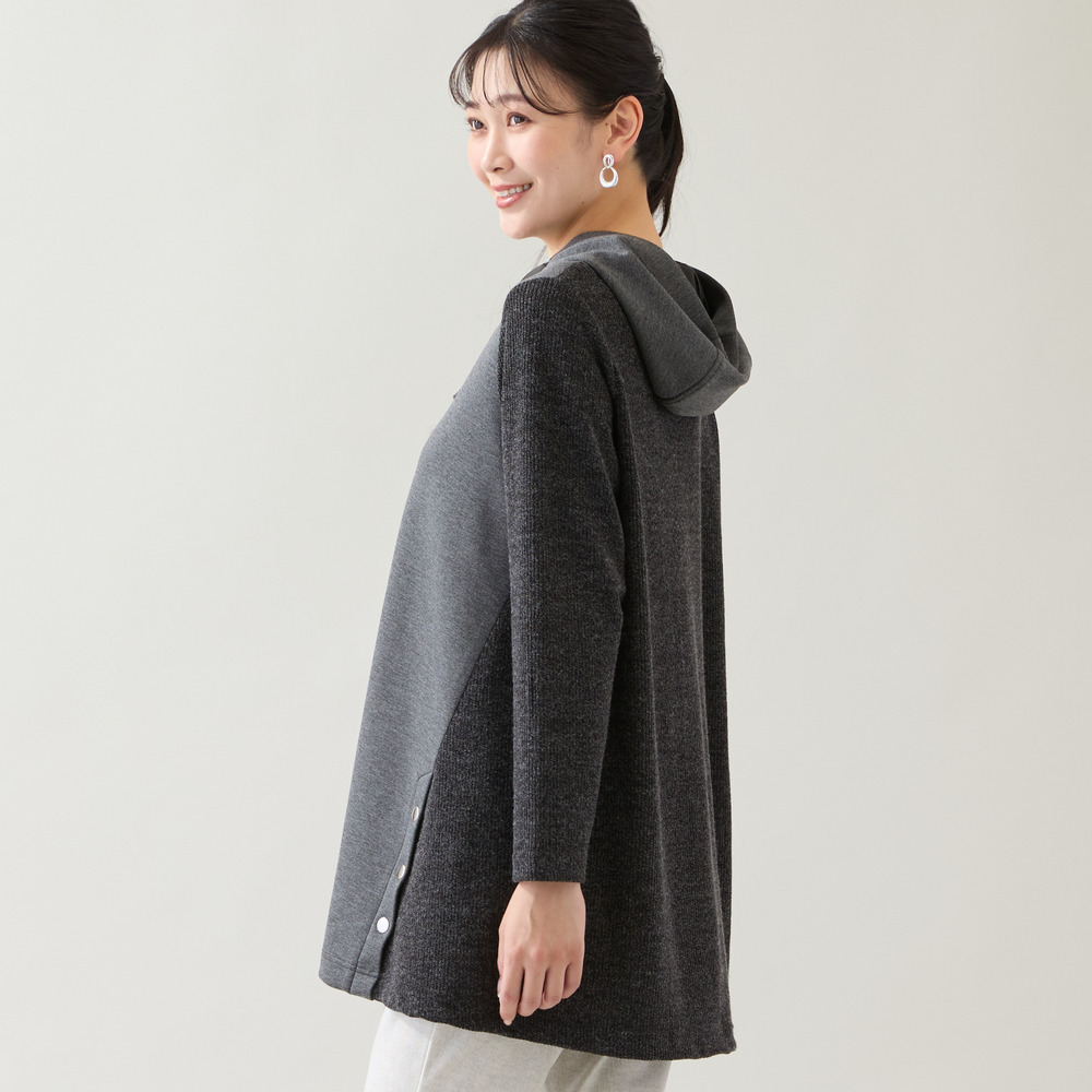 袖や後ろはリブ生地を使用した異素材使いのデザインです。