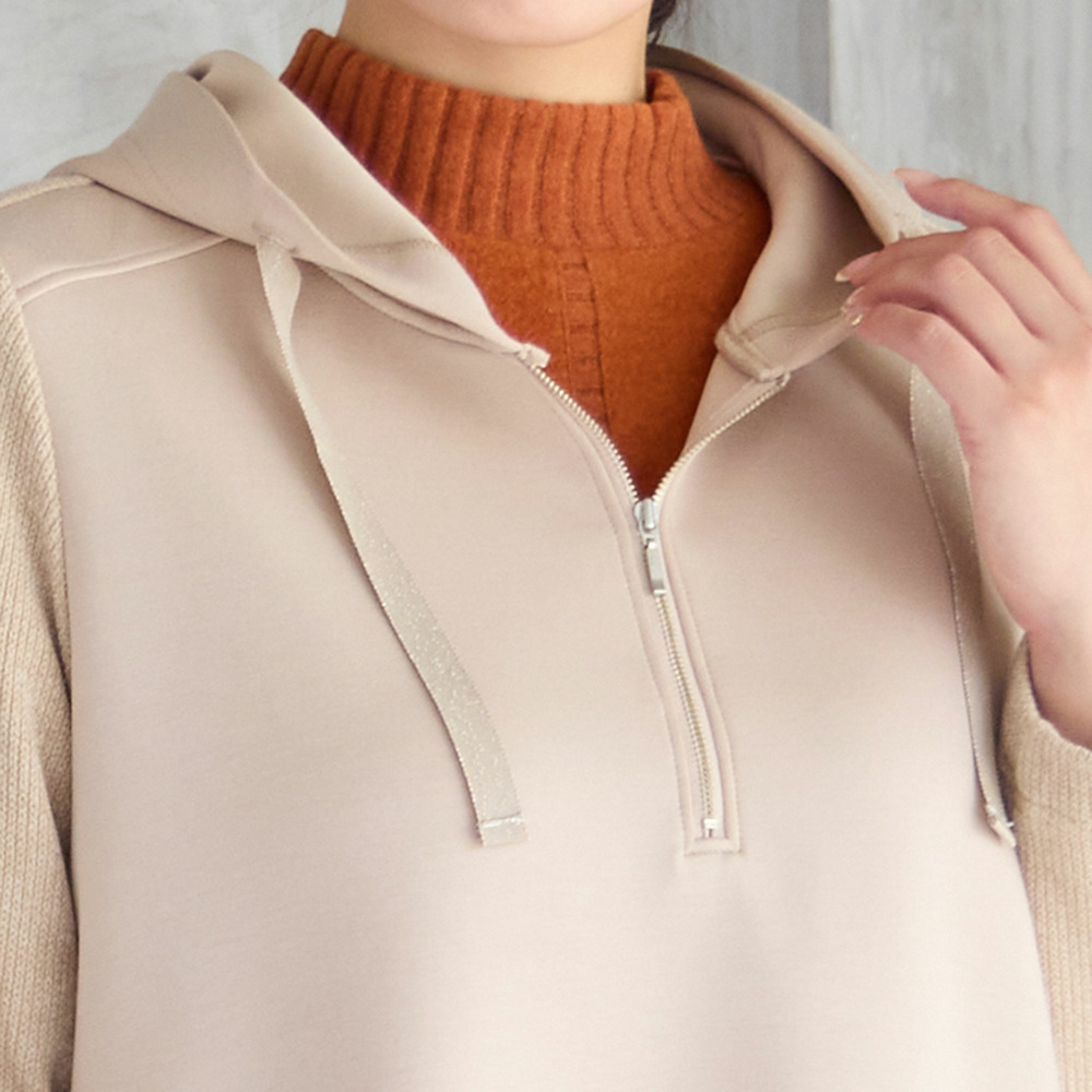 素材 後身頃・袖 ポリエステル:90 ポリウレタン:6 レーヨン:4 前身頃・フード ポリエステル:53 レーヨン:43 ポリウレタン:4