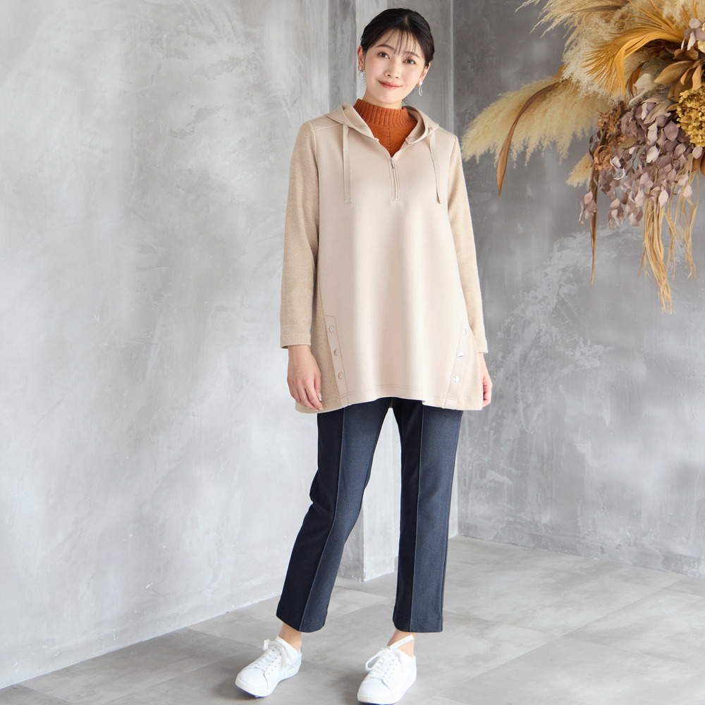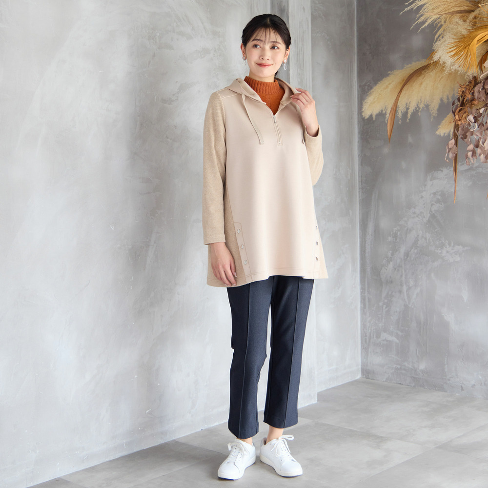スリムパンツやストレートパンツとならスッキリと着こなせます。