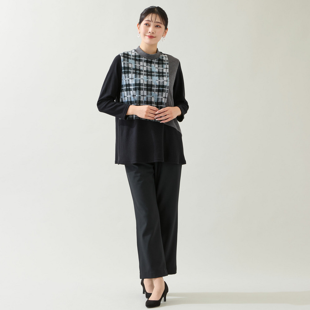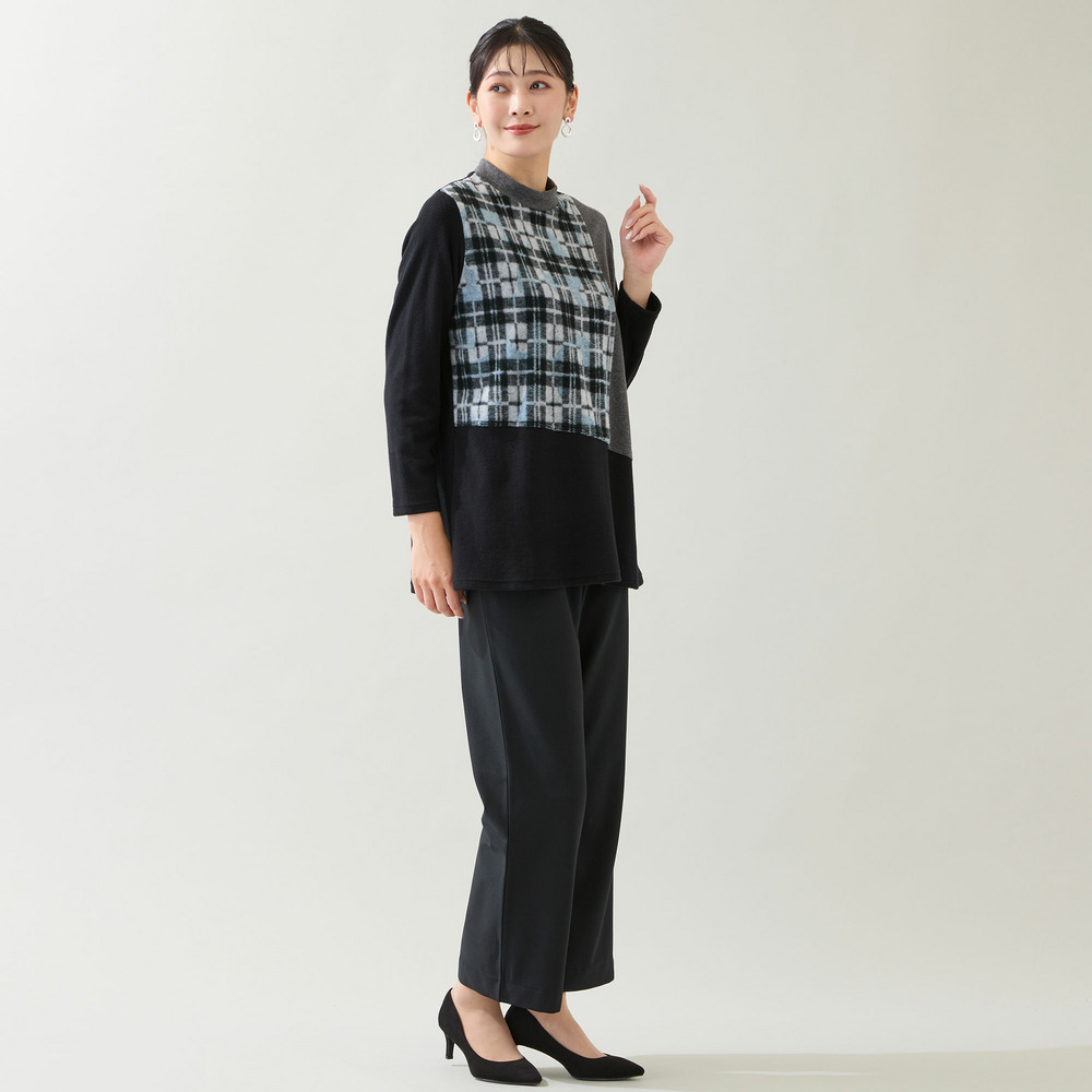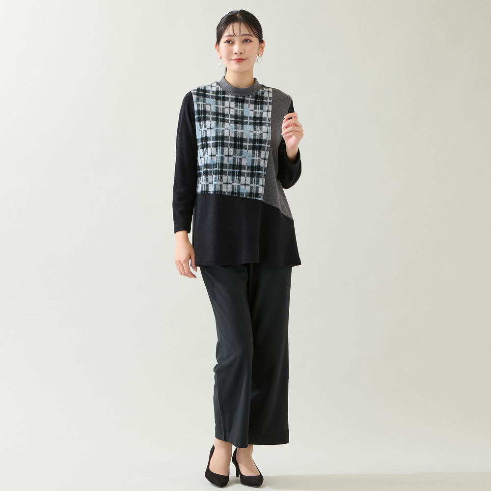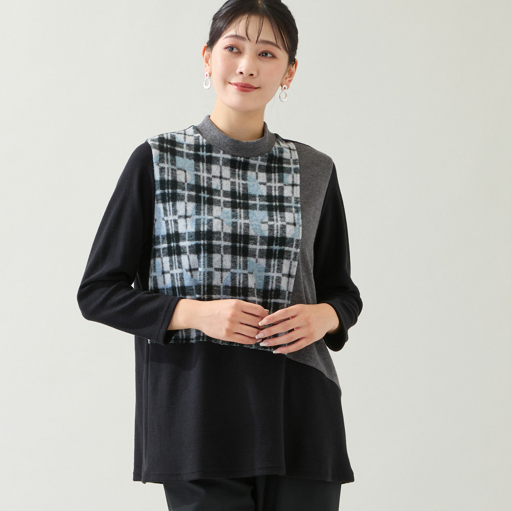 【洗える・日本製・3L/4Lサイズあり】ブロッキングトップス