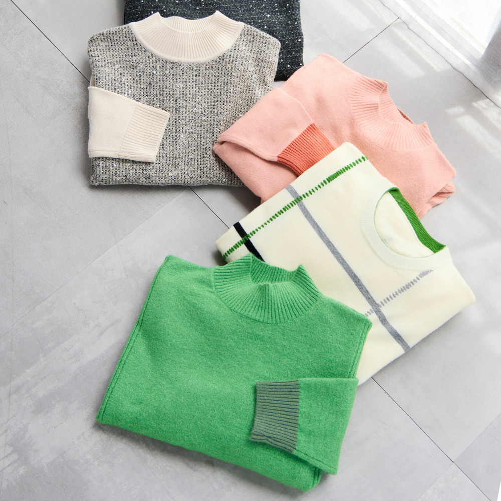 ◆ふっくら柔らかいタッチで毎日着たくなる!バイカラーセーター◆