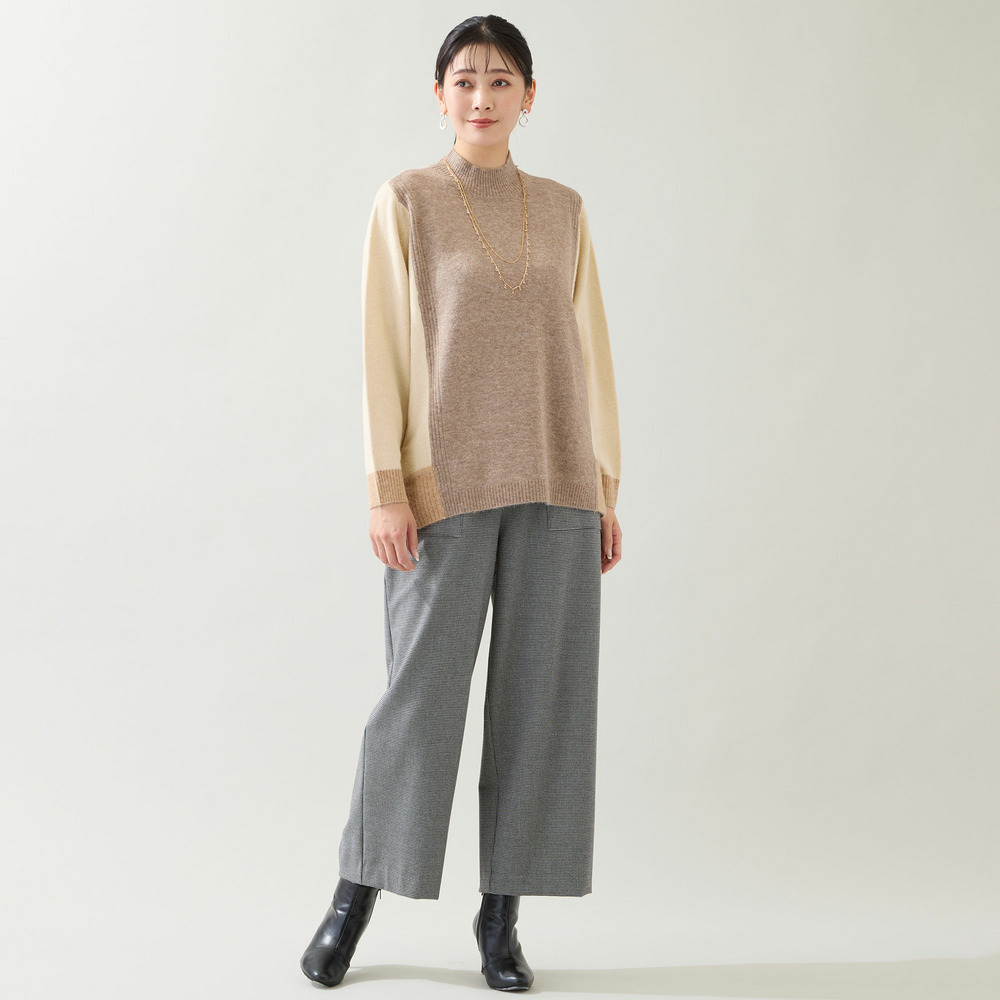バイカラーがお洒落なセーターは冬のお洒落に活躍間違いなし。
