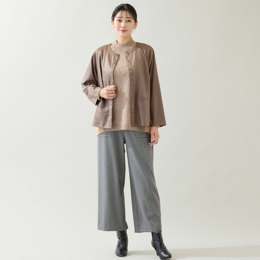 ワイドパンツとのリラックス感溢れる着こなしも素敵です。