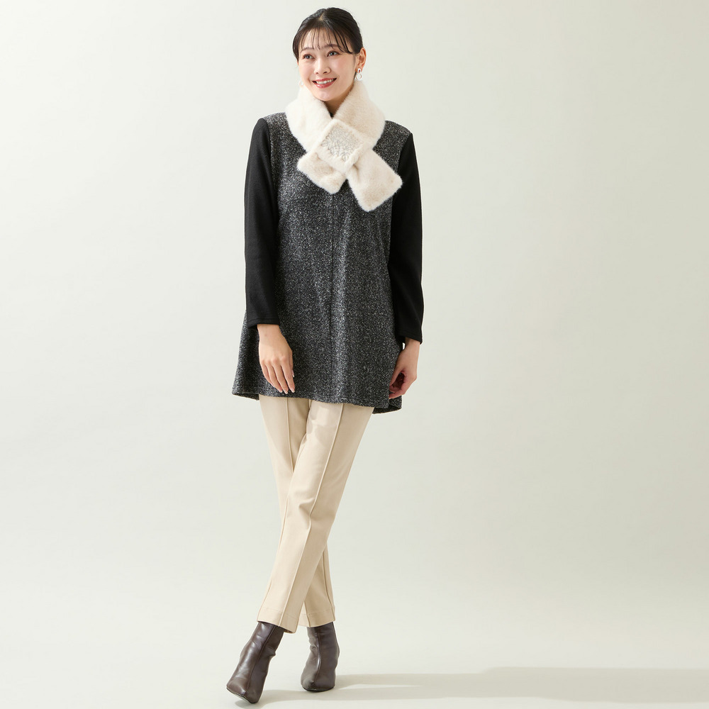 アクセサリーやファーマフラーを巻けばより華やかな印象でお楽しみ頂けます。