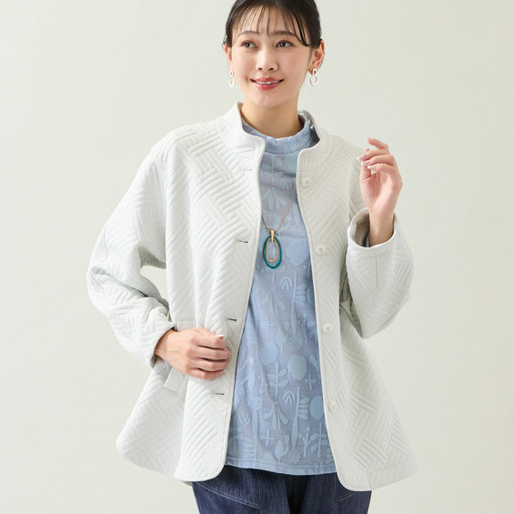 キルティング風に見えるジャカード素材のジャケットです。