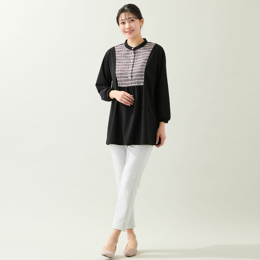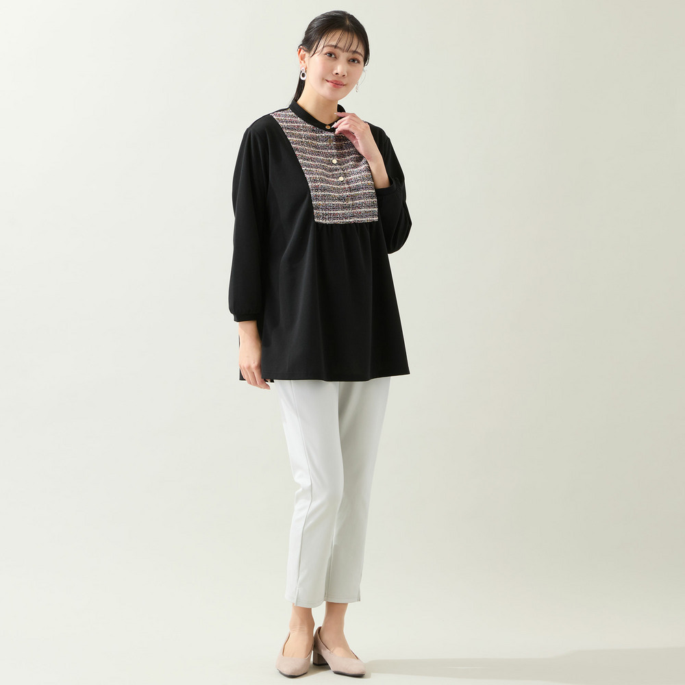 パンツスタイルが華やぐデザイン性◎のチュニック。