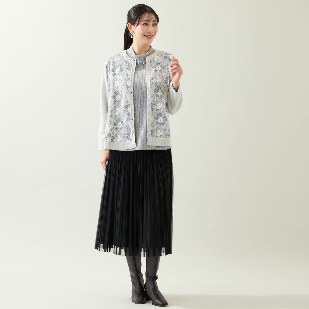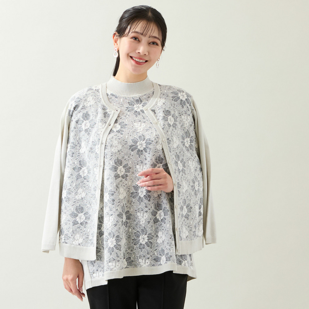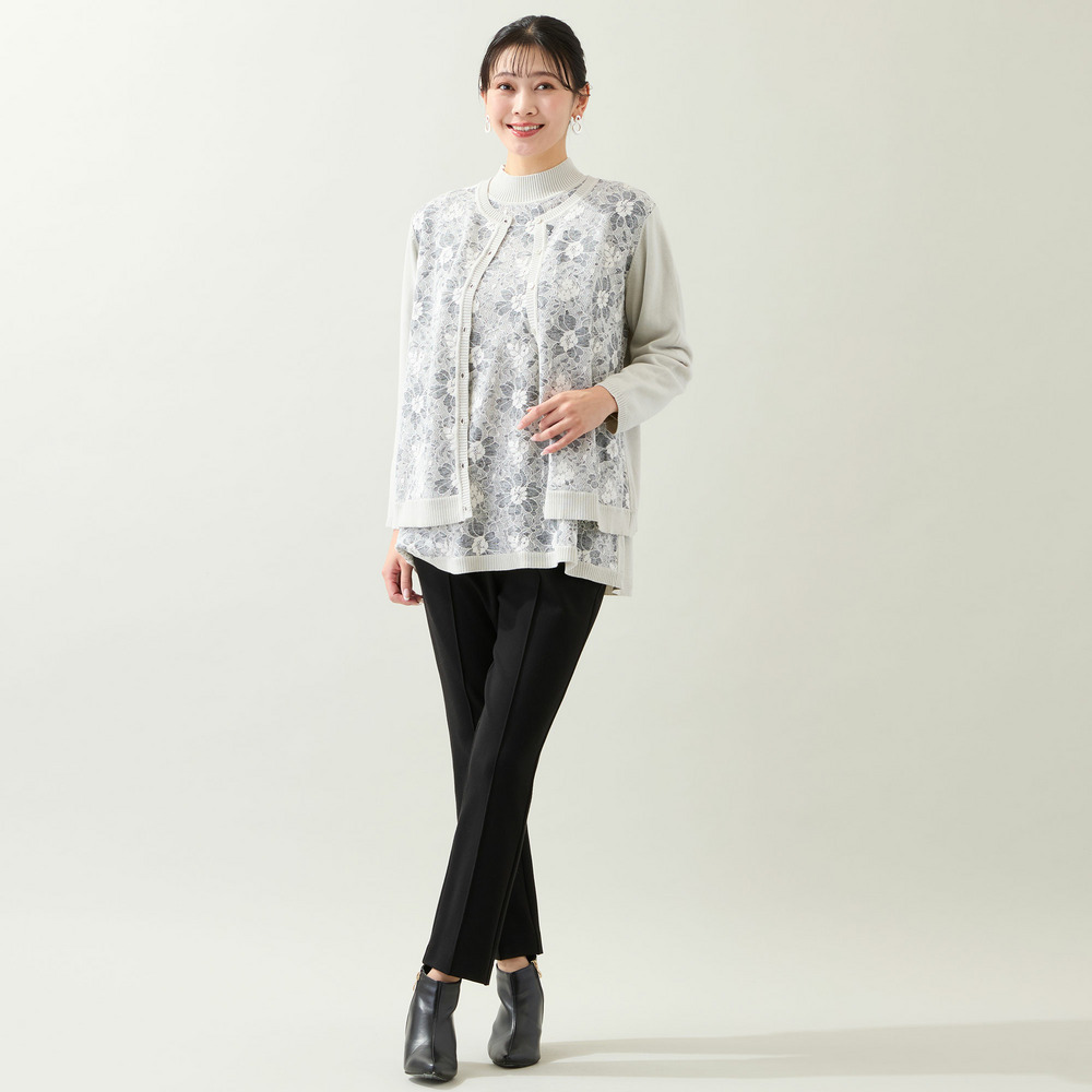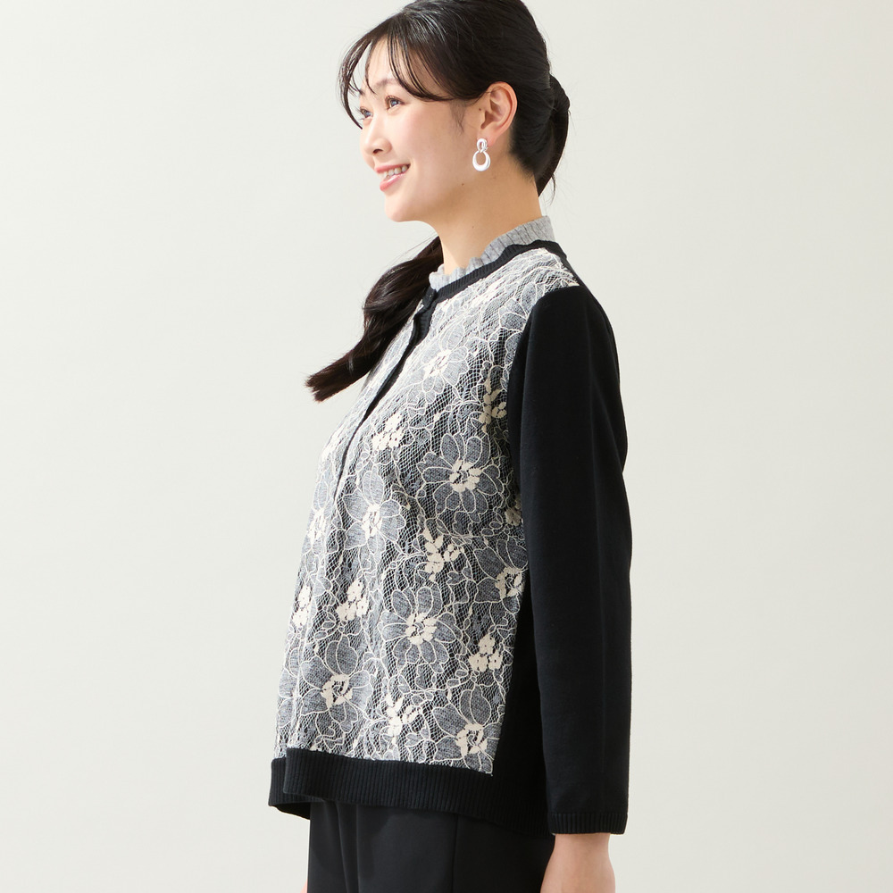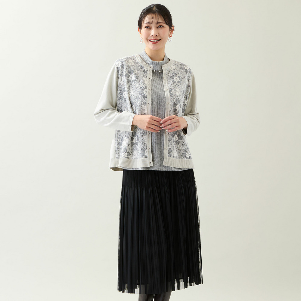 前身にはレースを重ねたニードルパンチ加工の素材を使用した、華やかさと温かみのあるデザインです。