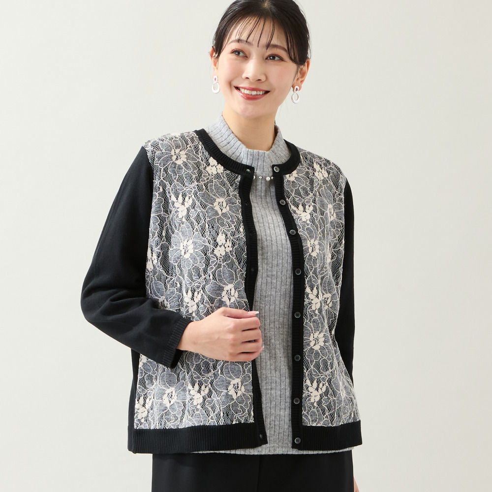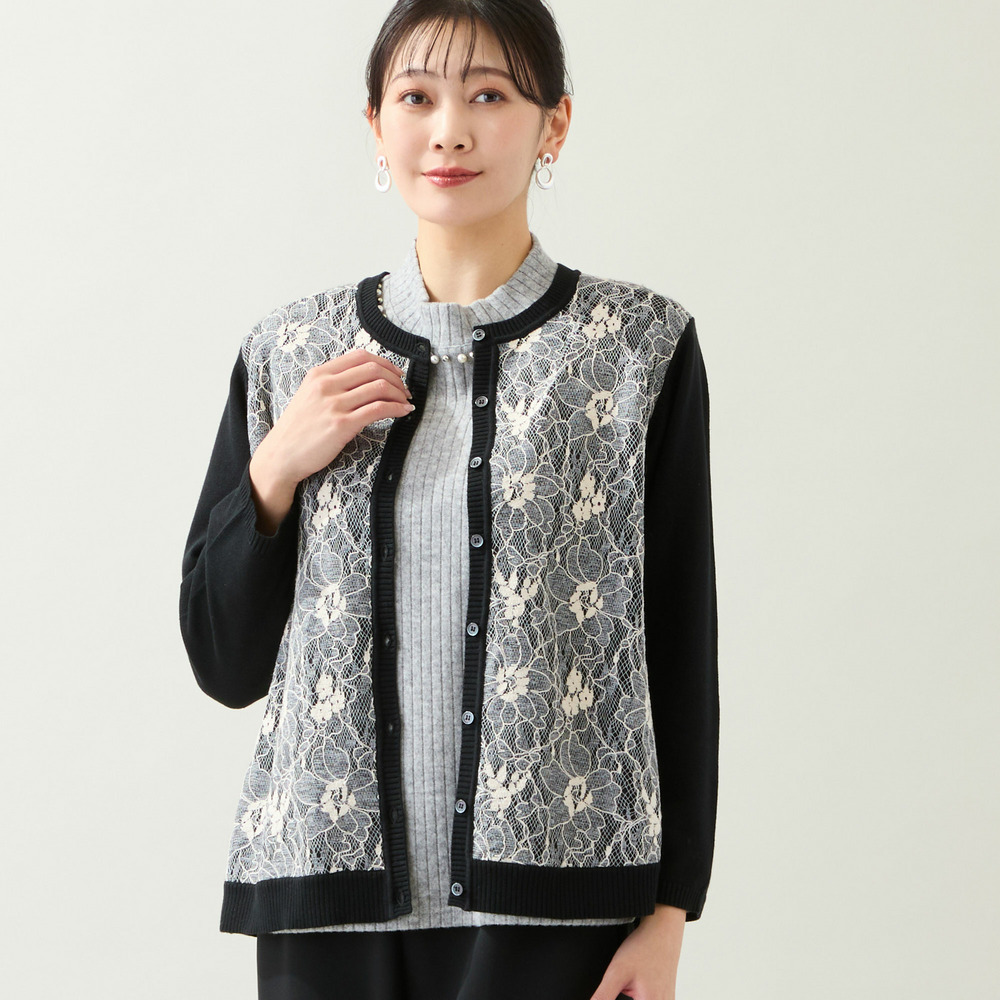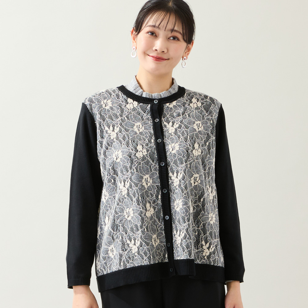 ◆温もり感のあるレースが美しいニットカーディガン◆