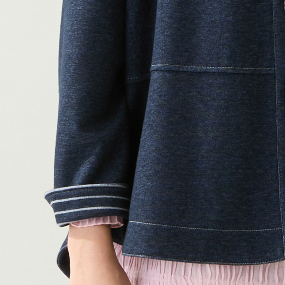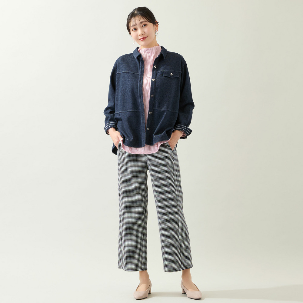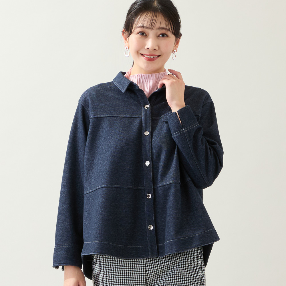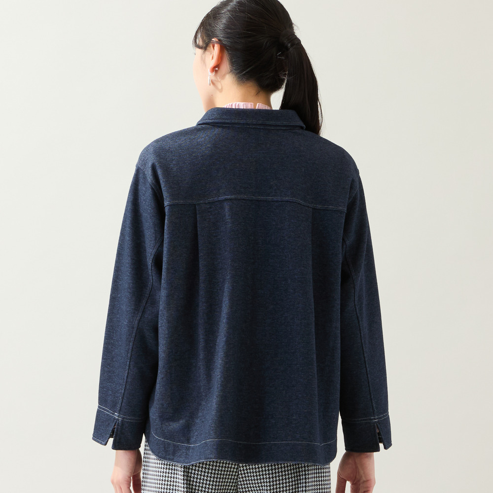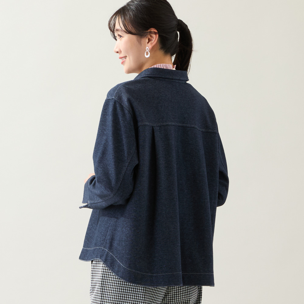 ストレッチ性があり、滑らかで柔らかい風合いのニットデニムのシャツジャケットです。