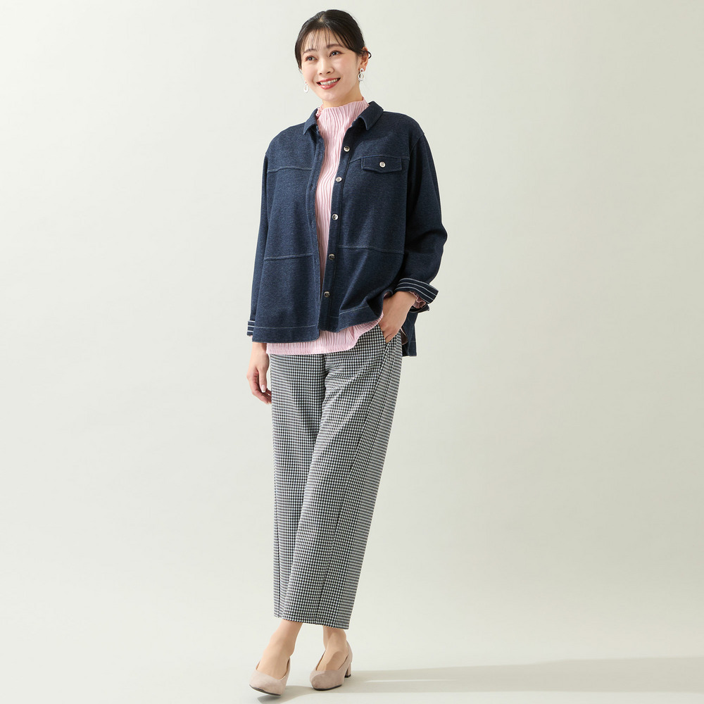 【洗える・3L/4Lサイズあり】ニットデニムシャツジャケット