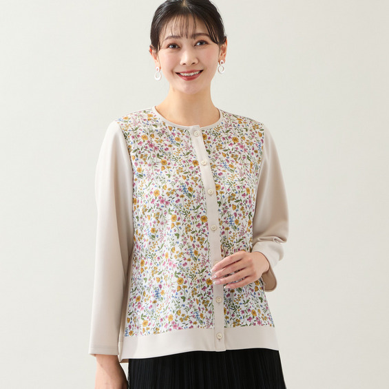 ◆上品な甘さ漂うボタニカル柄のカーディガン◆