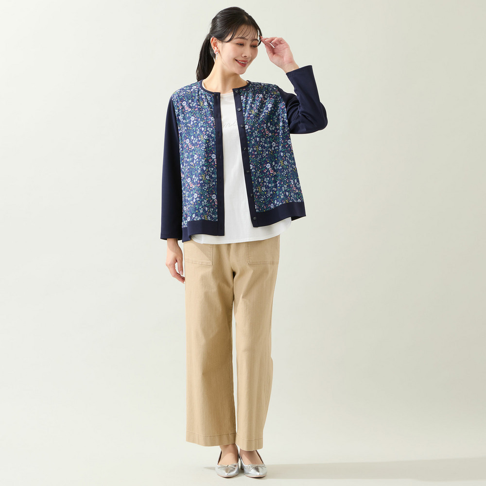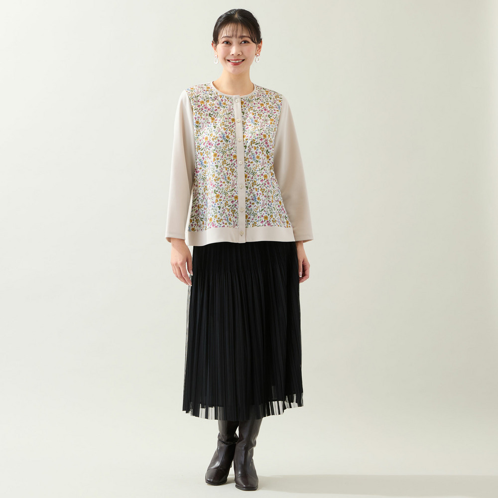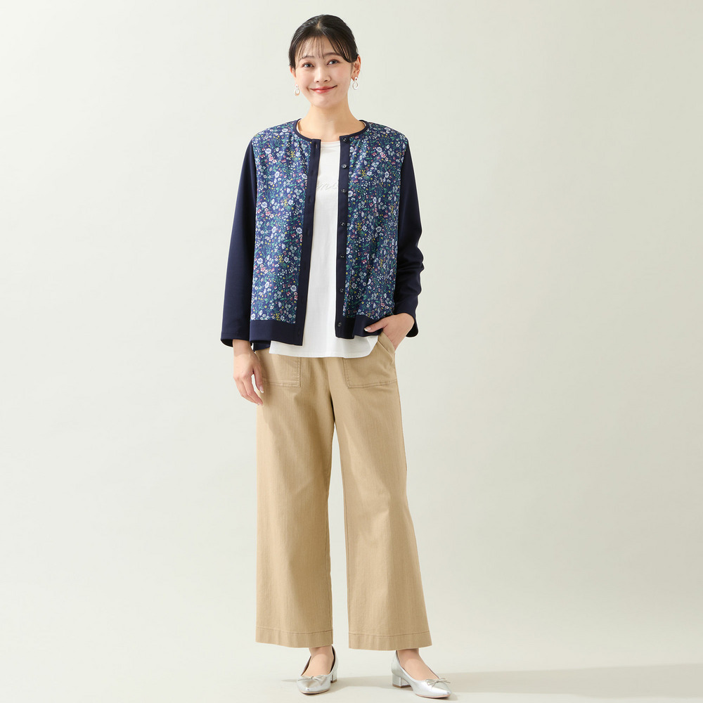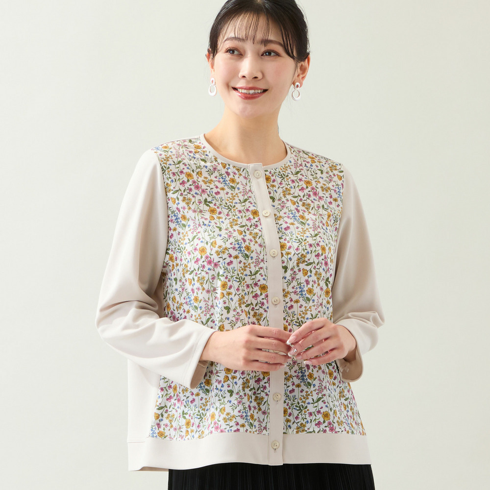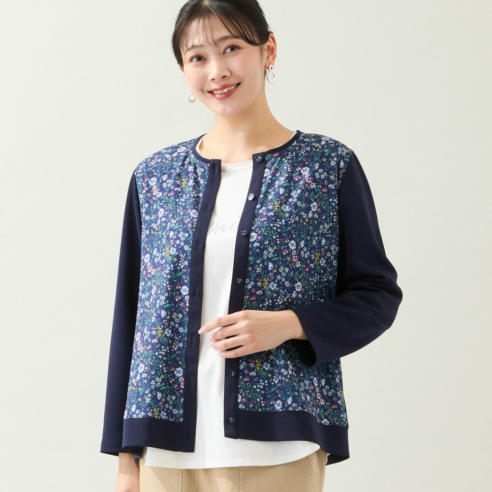 無地と柄のコントラストが効いた、品よく羽織れる一枚です。
