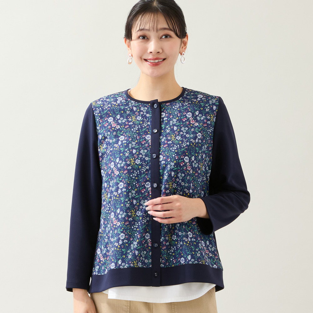 フロントにボタニカル柄のプリントを使ったカーディガンです。