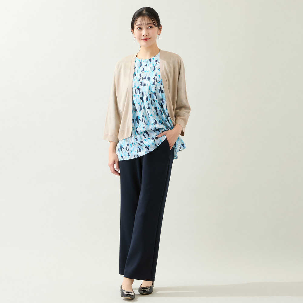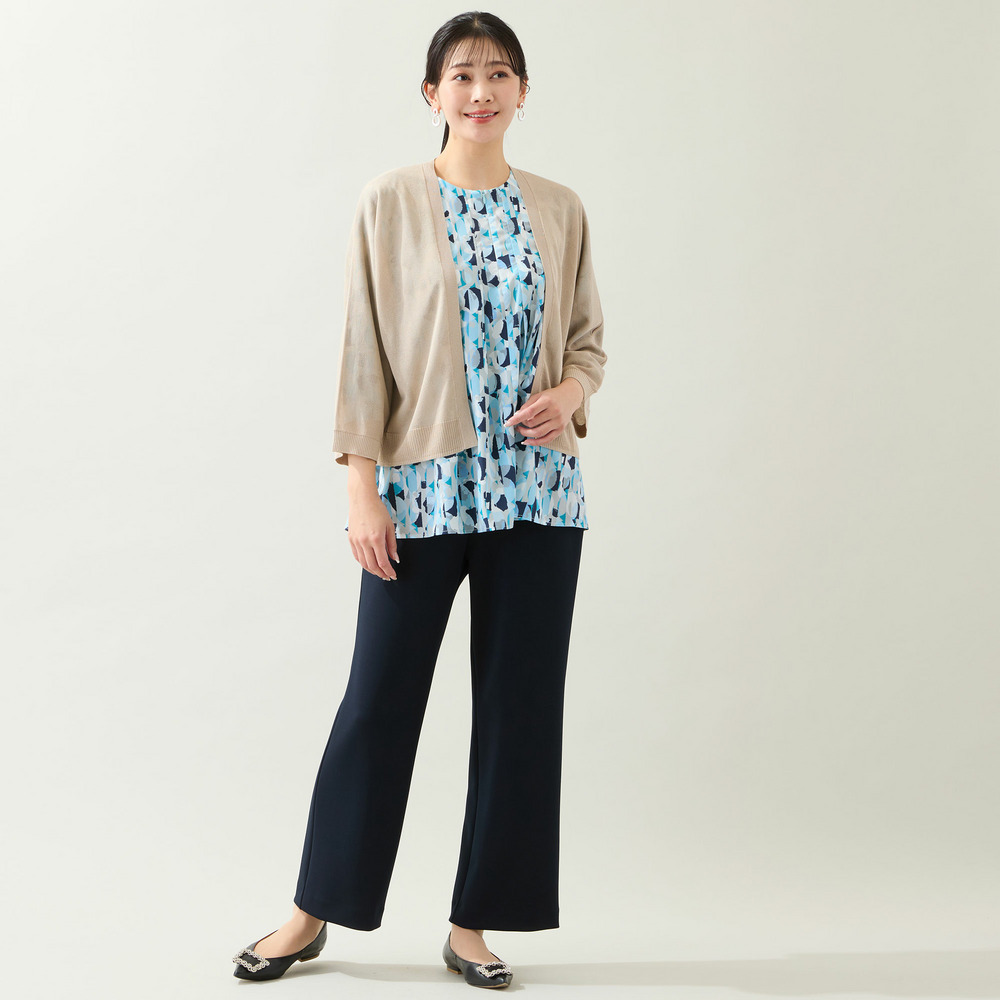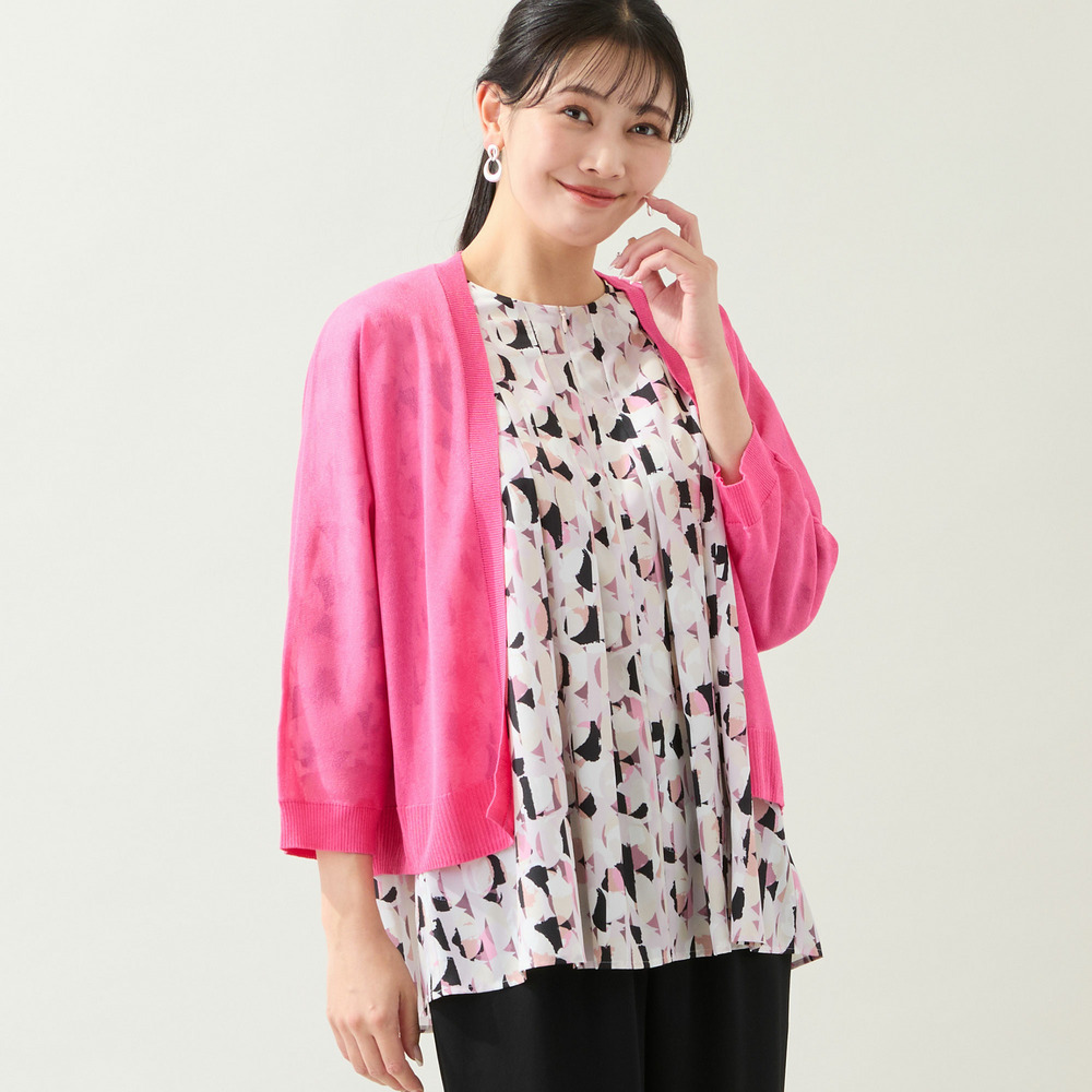 柄と同系色のカーディガンを合わせれば、より華やかに着ていただけます。