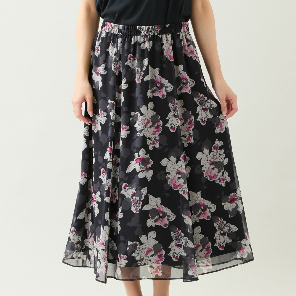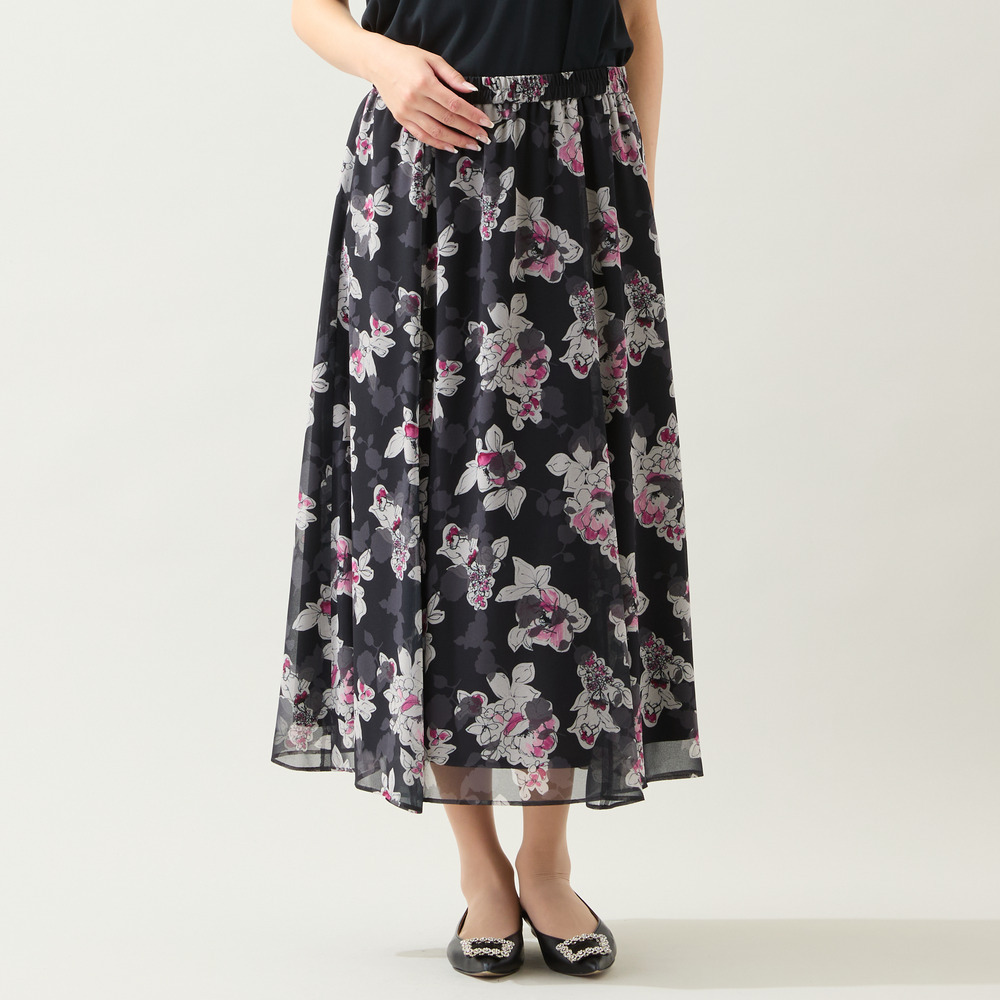 薄手のシフォンにエレガントな花柄をプリントしたスカート。