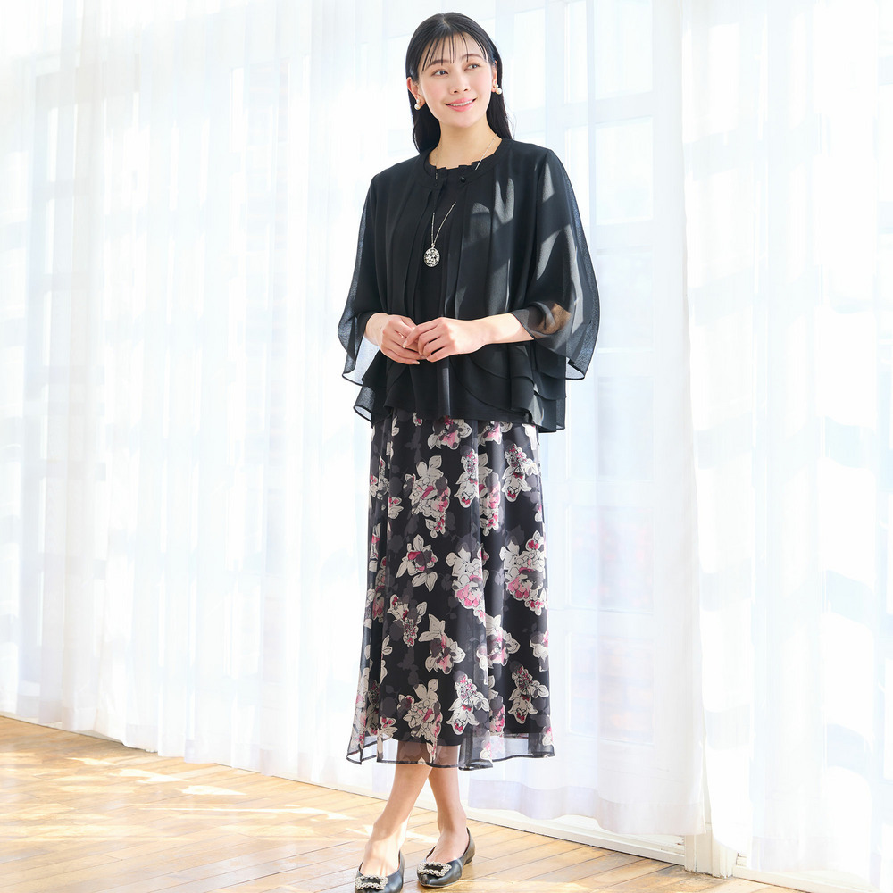 【洗える・セットアップ可・3Lサイズあり】シフォンフラワースカート