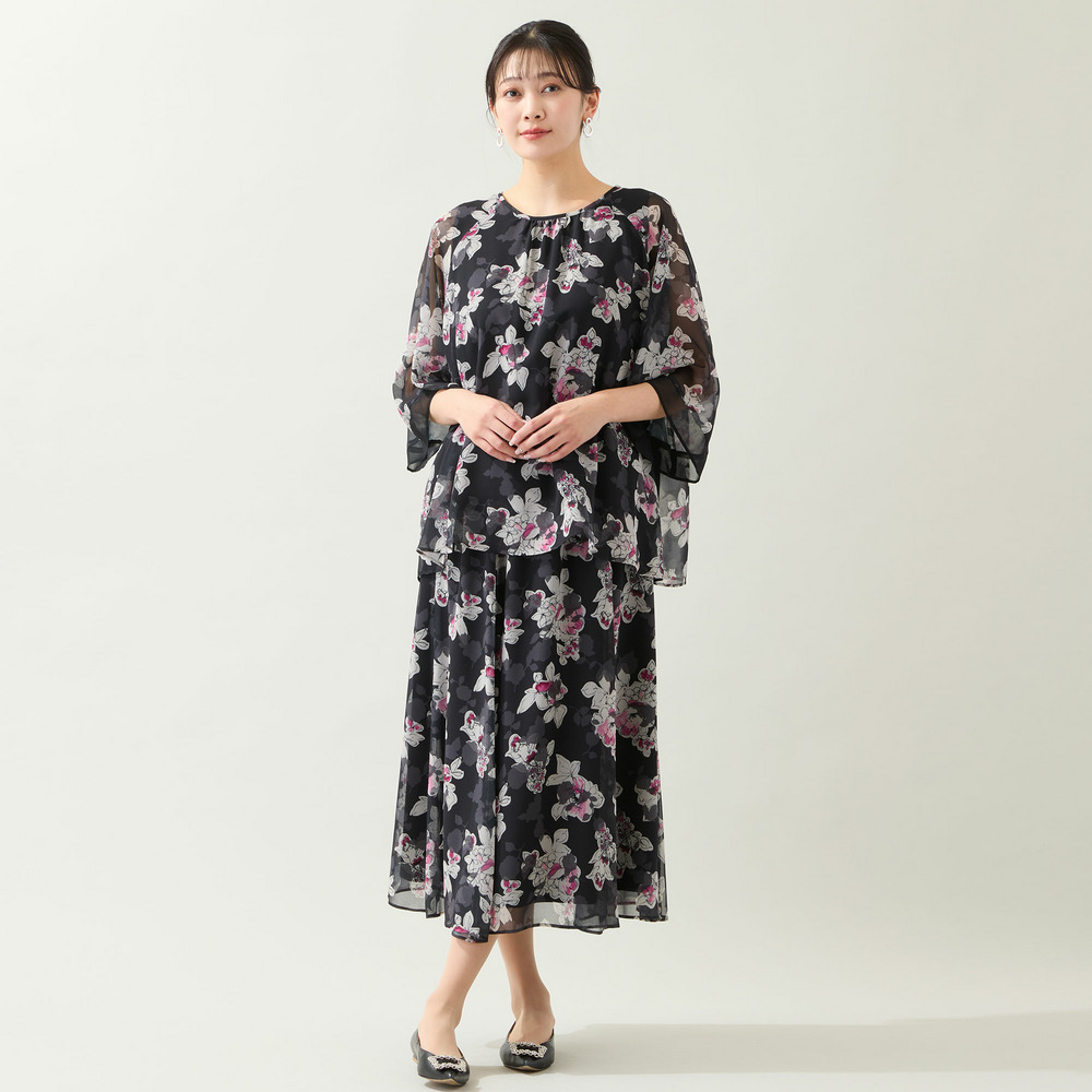• 【洗える・セットアップ可・3Lサイズあり】シフォンフラワースカート1