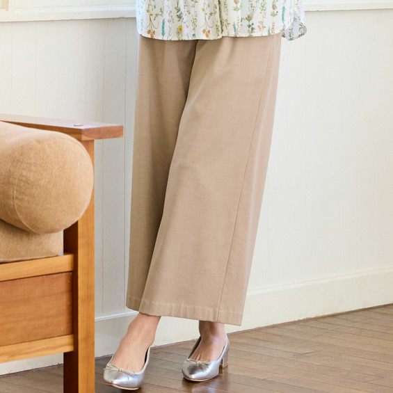 脚の形が出にくいワイドシルエットも魅力。足首が見える丈で重くなり過ぎず軽快にお楽しみいただけます。