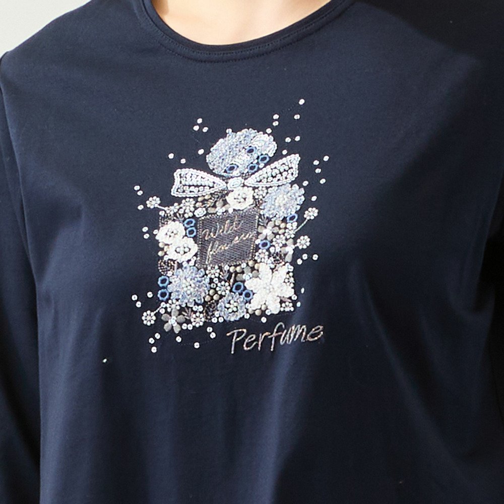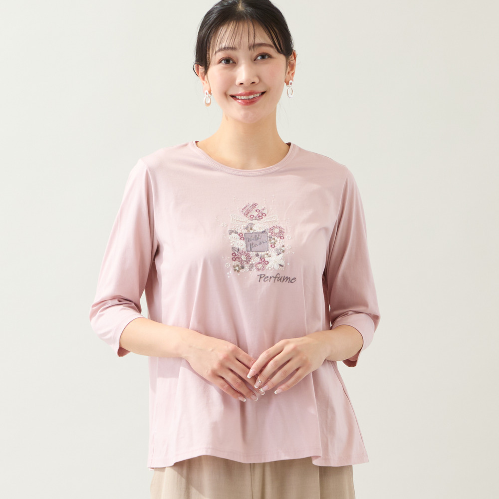 ◆胸元に煌めきを!香水瓶の刺繍が大人可愛いコットントップス◆