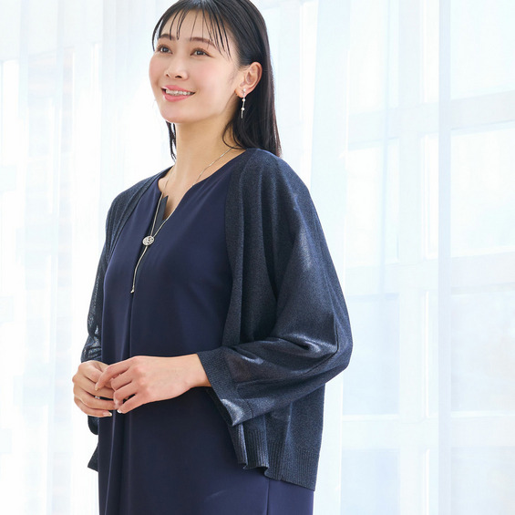 チクチクしにくい極細のラメを編み込んだ華やかな一枚です。