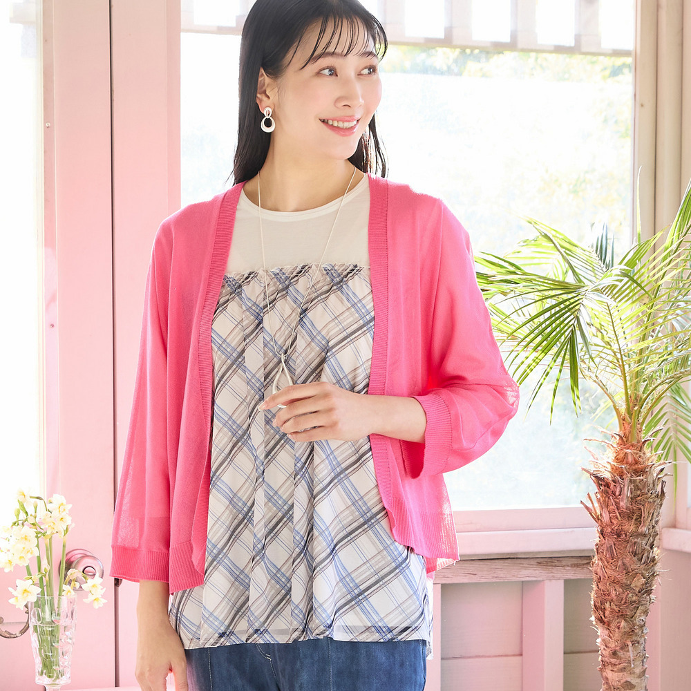 Tシャツやチュニックに羽織れば華やかな印象に。