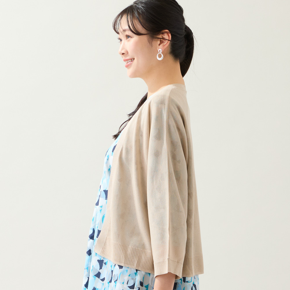 ストレッチが効いており、ドルマンスリーブでゆったりとした羽織り心地が魅力です。