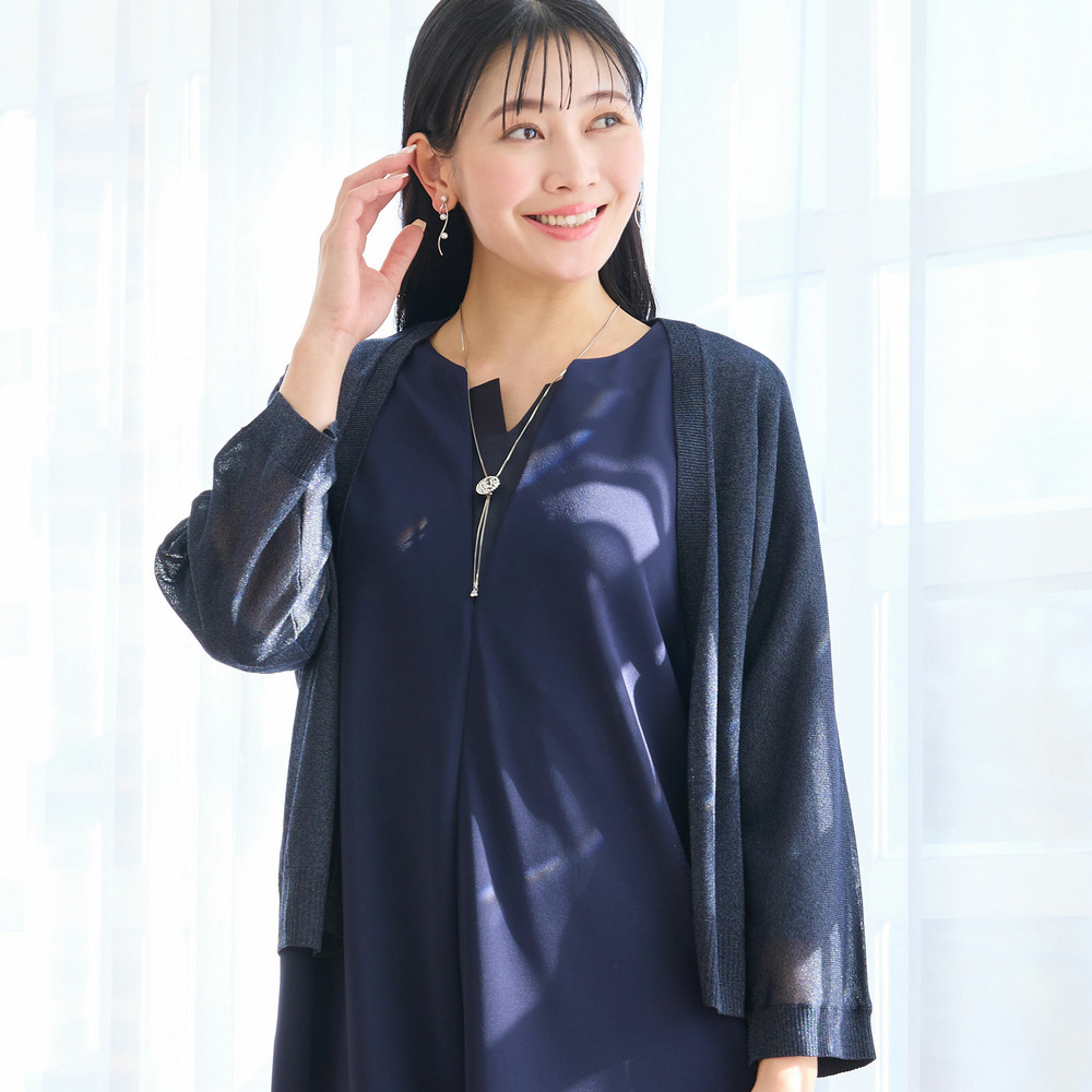 ほのかに煌めくスパークナイロンのニットカーディガン。