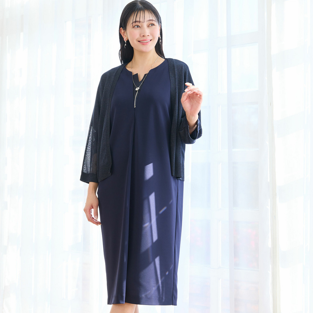 ワンピースに合わせたエレガントな着こなしも素敵です。
