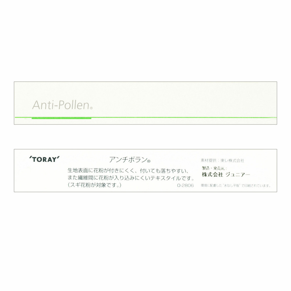 生地表面に花粉が付きにくく、付いても落ちやすい、また繊維間に花粉が入り込みにくい機能素材を採用。