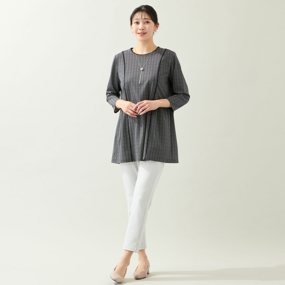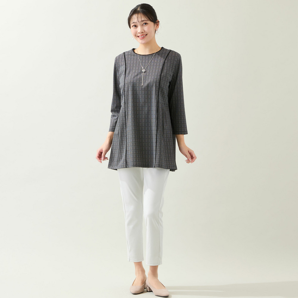 お腹やヒップラインをカバーできるチュニックはパンツスタイルの強い味方。