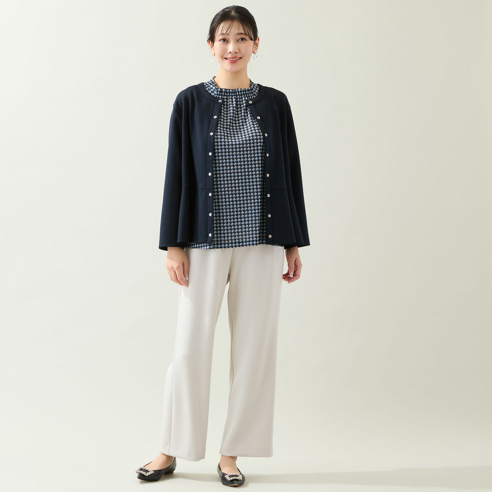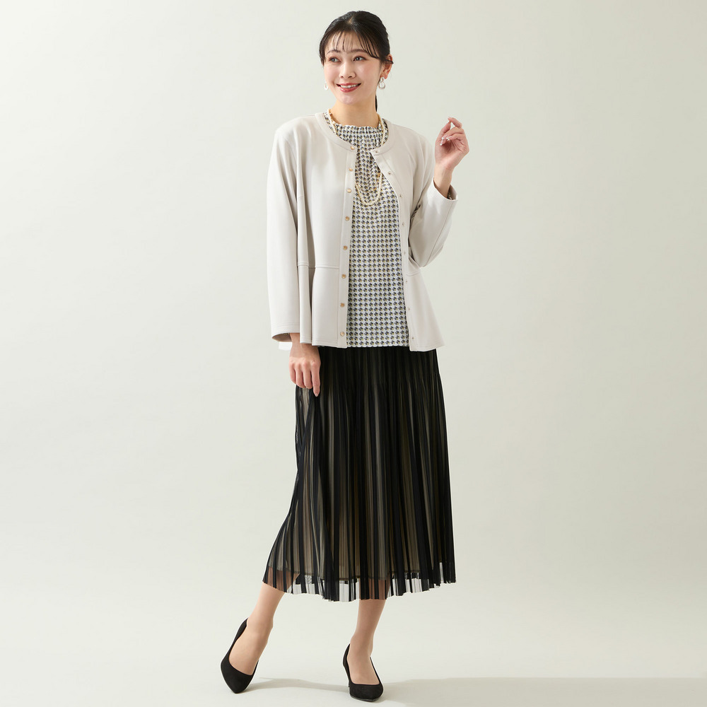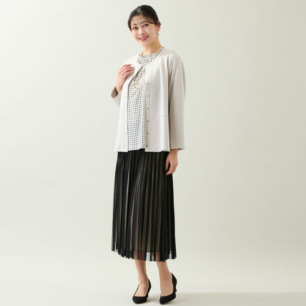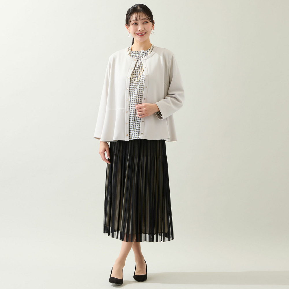 パンツだけでなくスカートと合わせたり、ワンピースの羽織りとしても着まわせます。