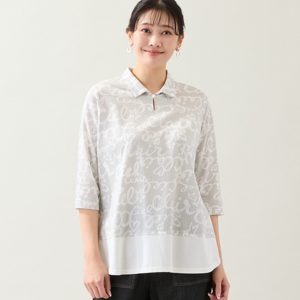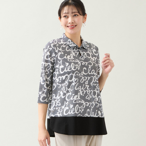 ◆人気のスキッパートップスにポップなロゴ柄が登場!◆
