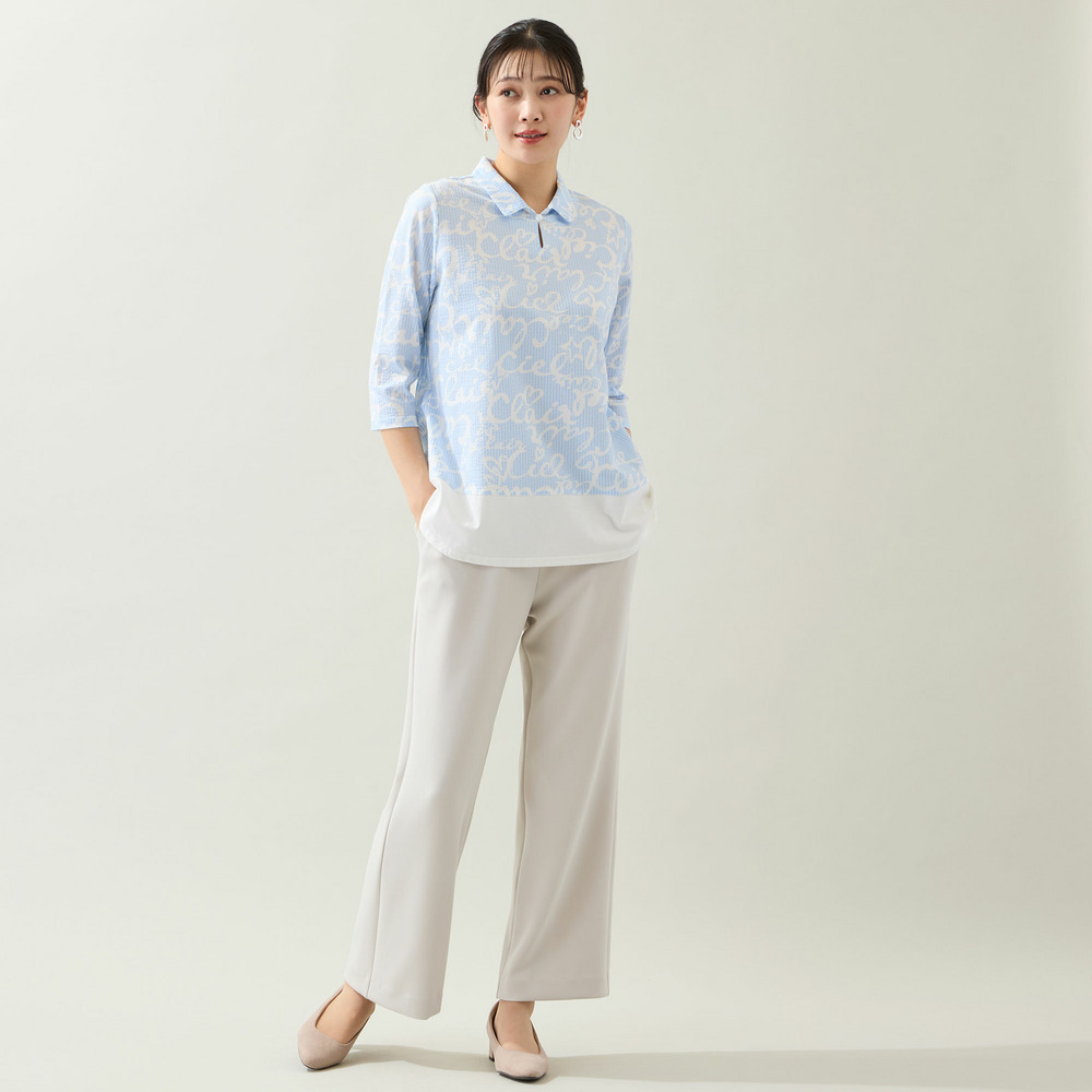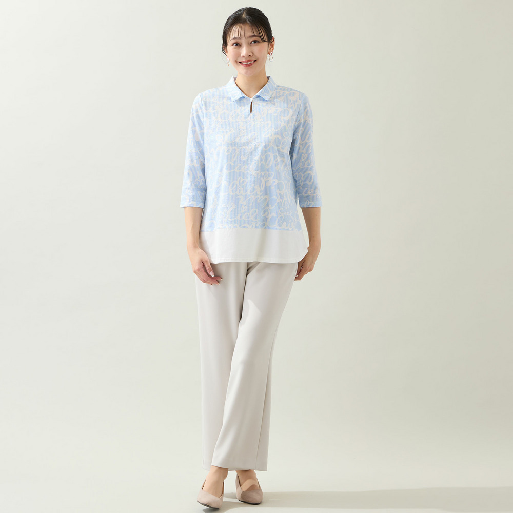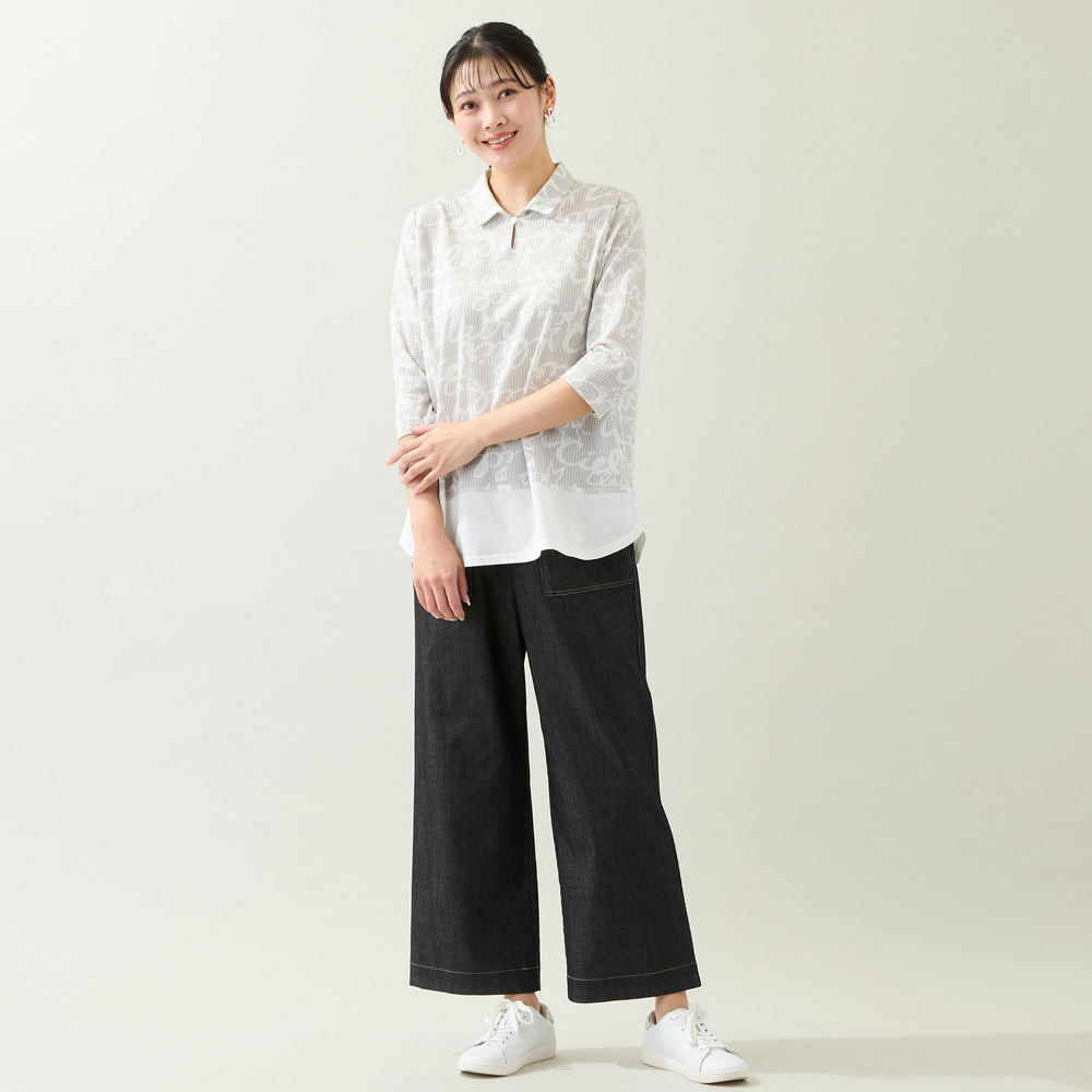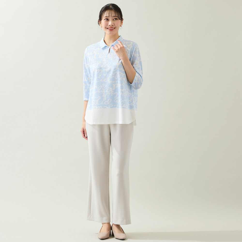 裾を無地で切り替えることで視線が上がり、スッキリとした印象でお楽しみいただけます。