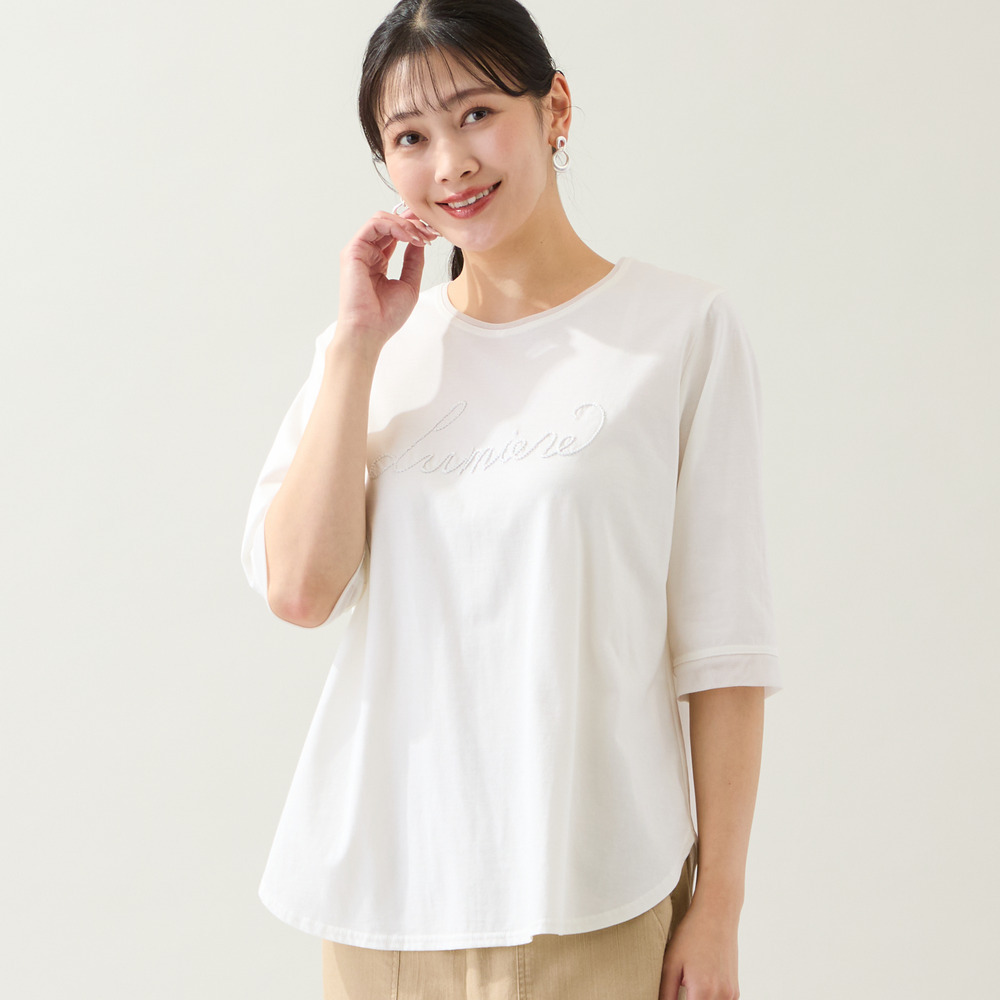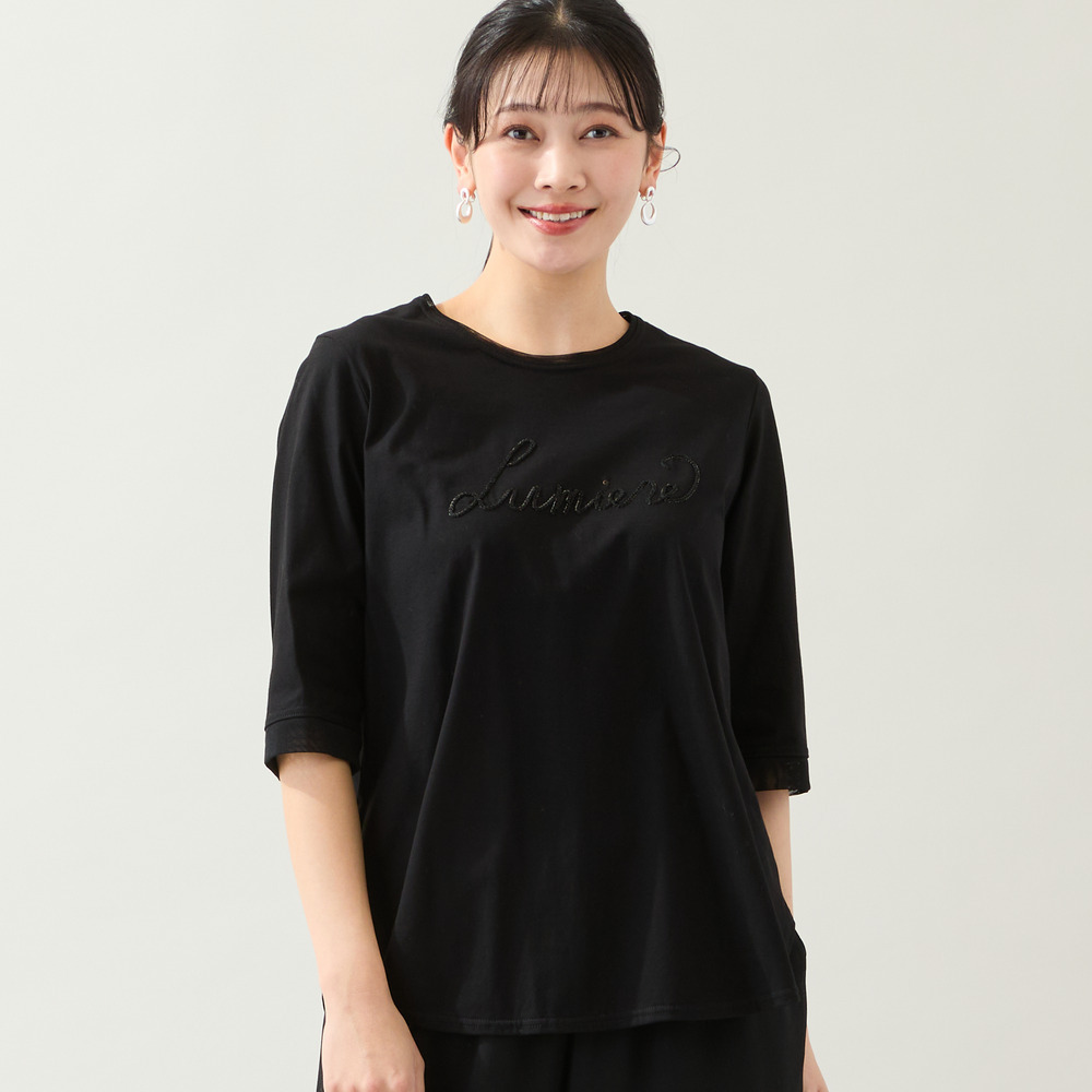 • 【洗える・綿100%・日本製・L~4Lサイズ】Lumiere刺繍カットソー1