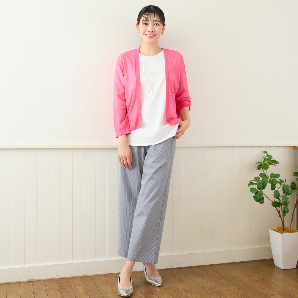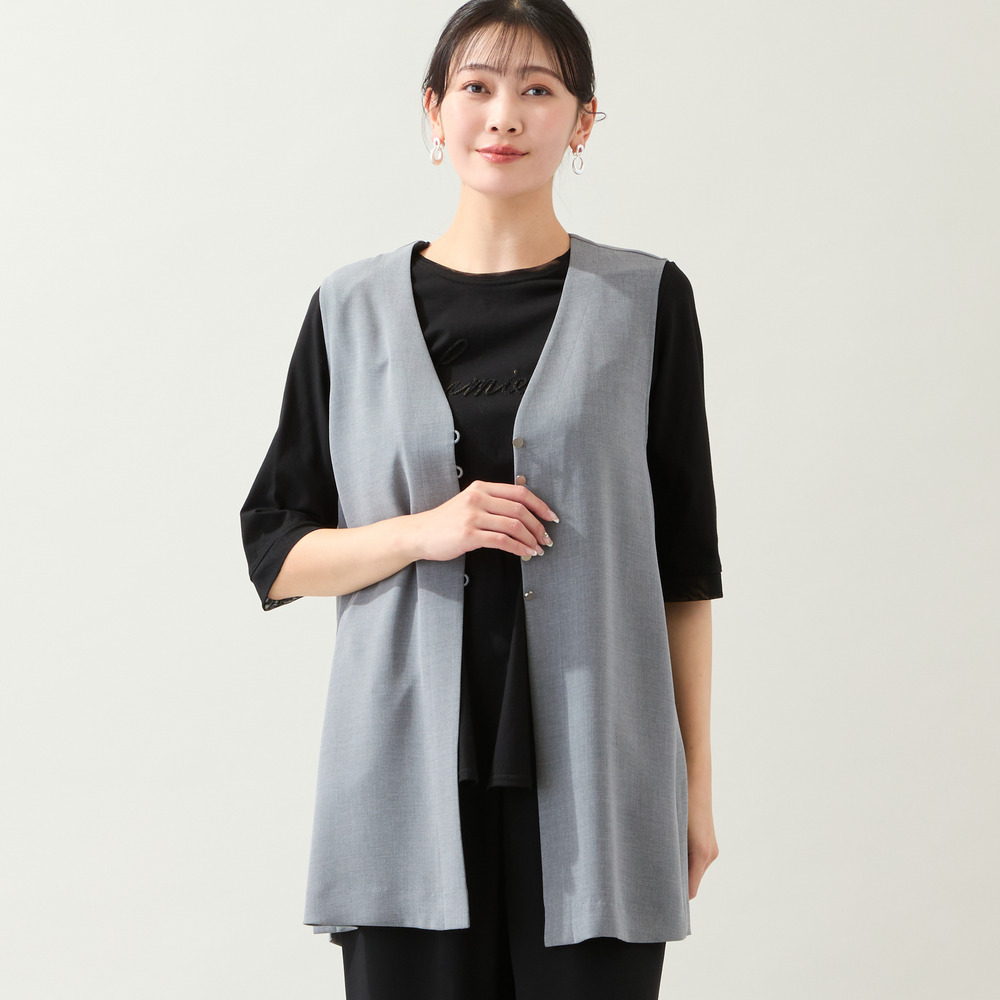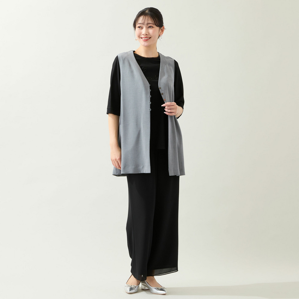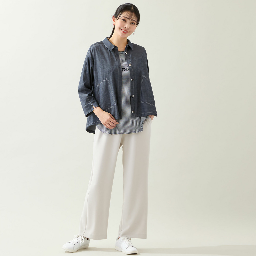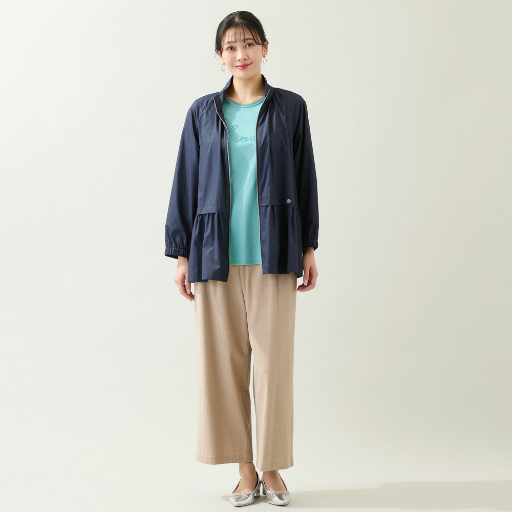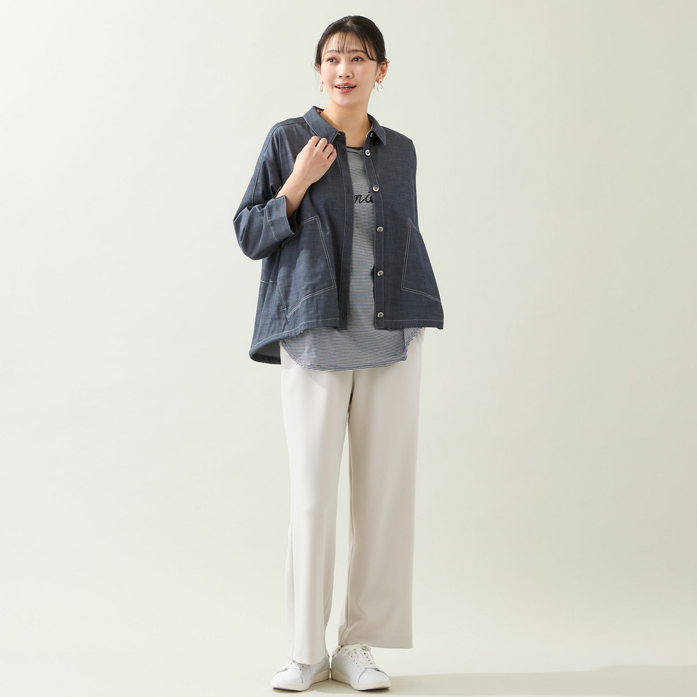 ヒップラインが隠れるシルエットでパンツスタイルと好相性です。