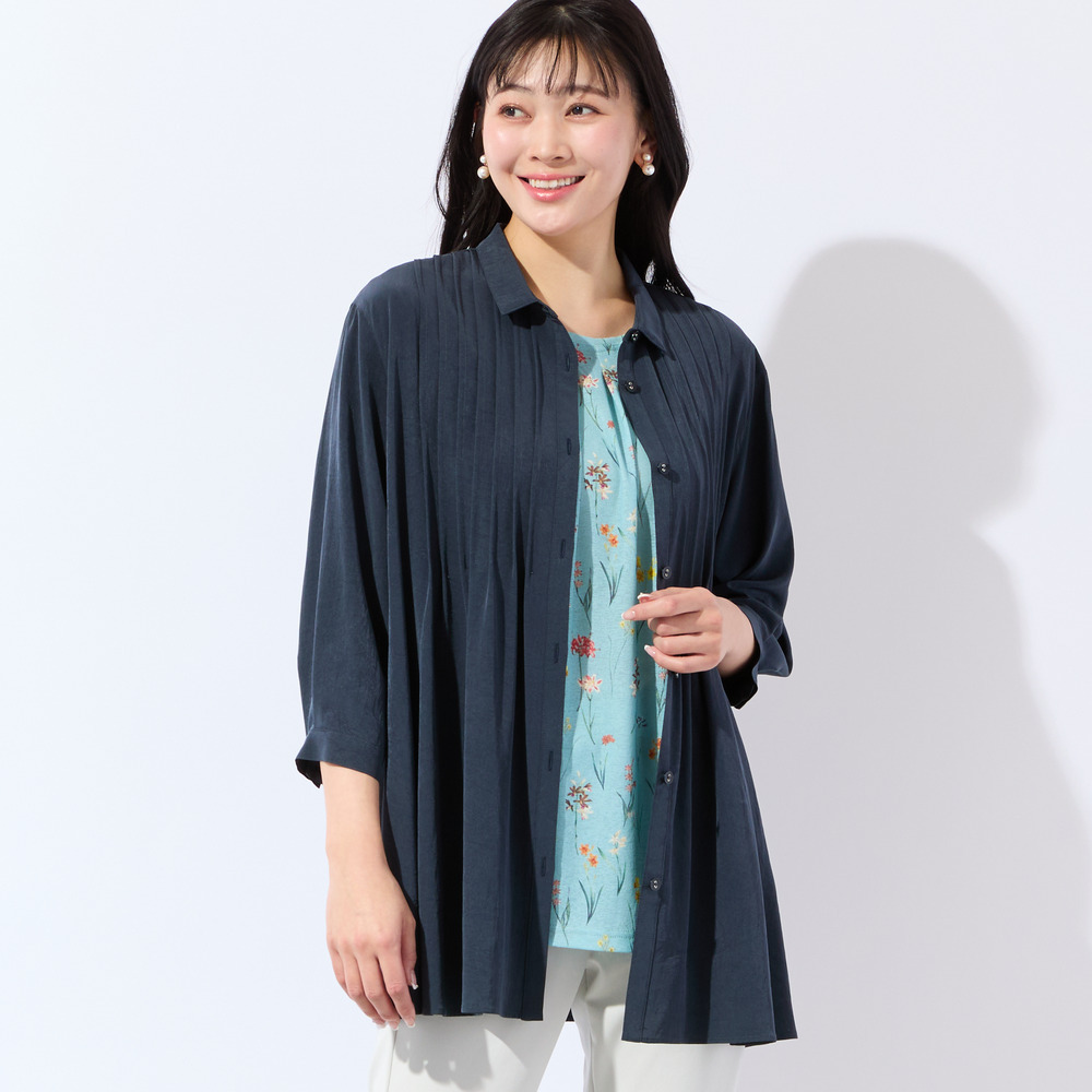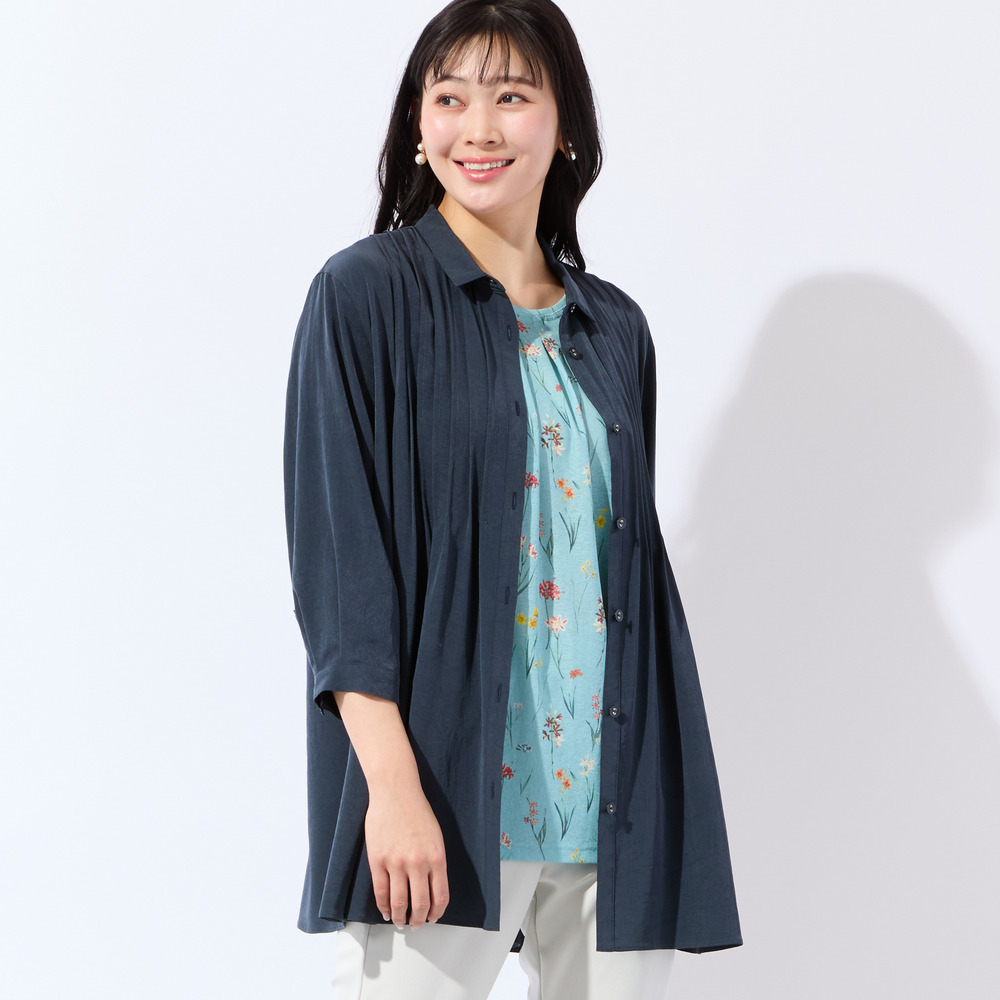 • 【洗える・接触冷感・L~4Lサイズ】Soalonピンタックシャツ1