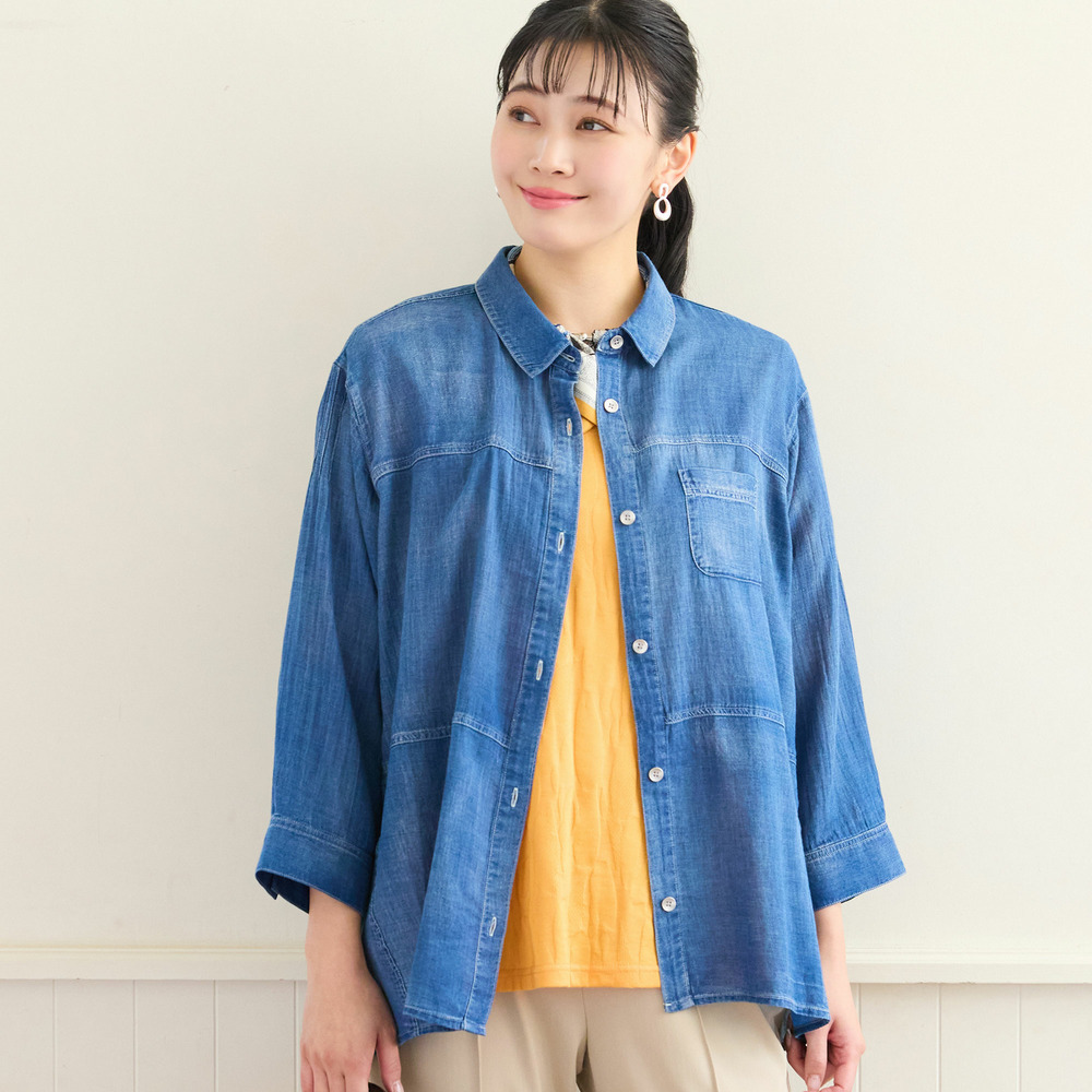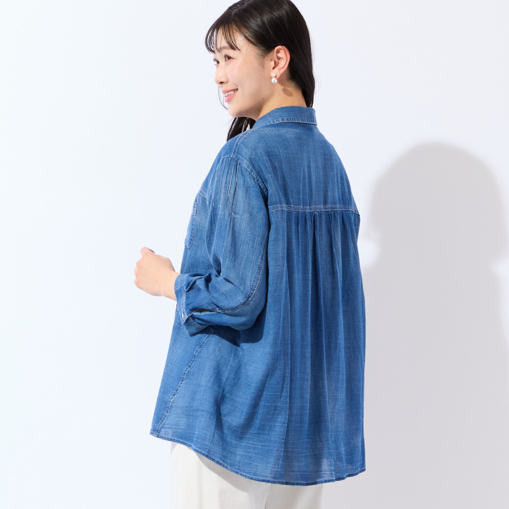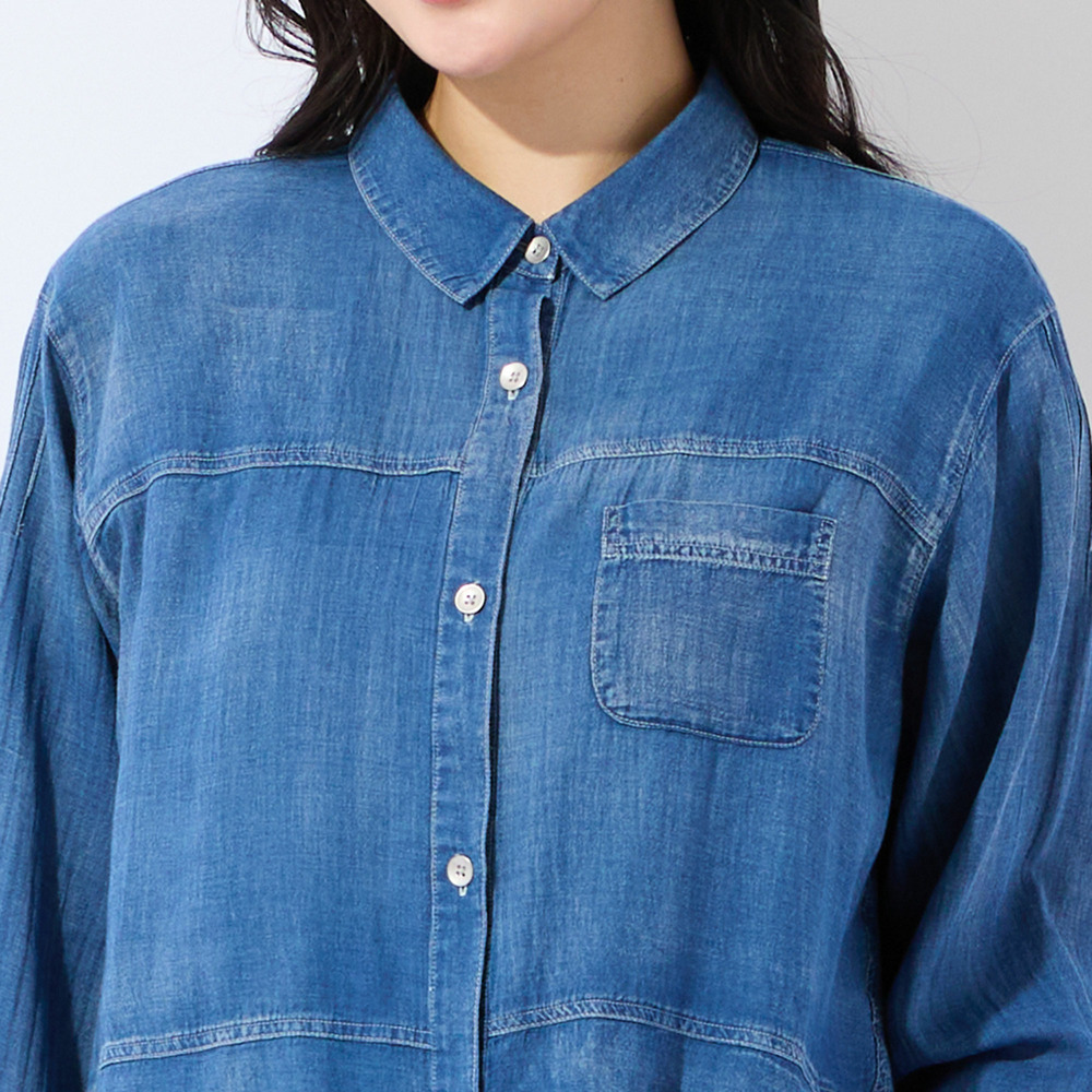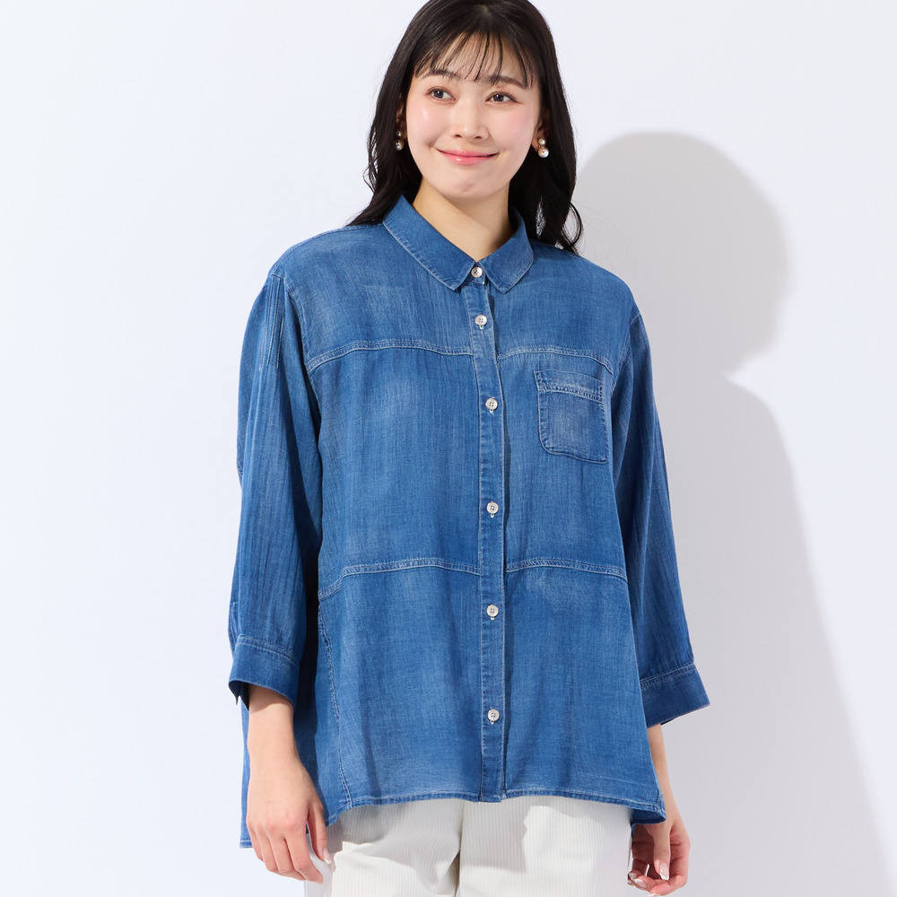 【定番人気・洗える・L~4Lサイズ】デニムガーゼAラインシャツ