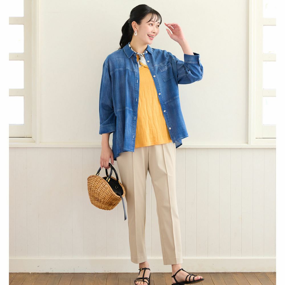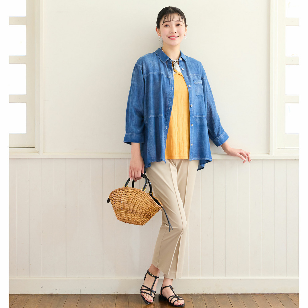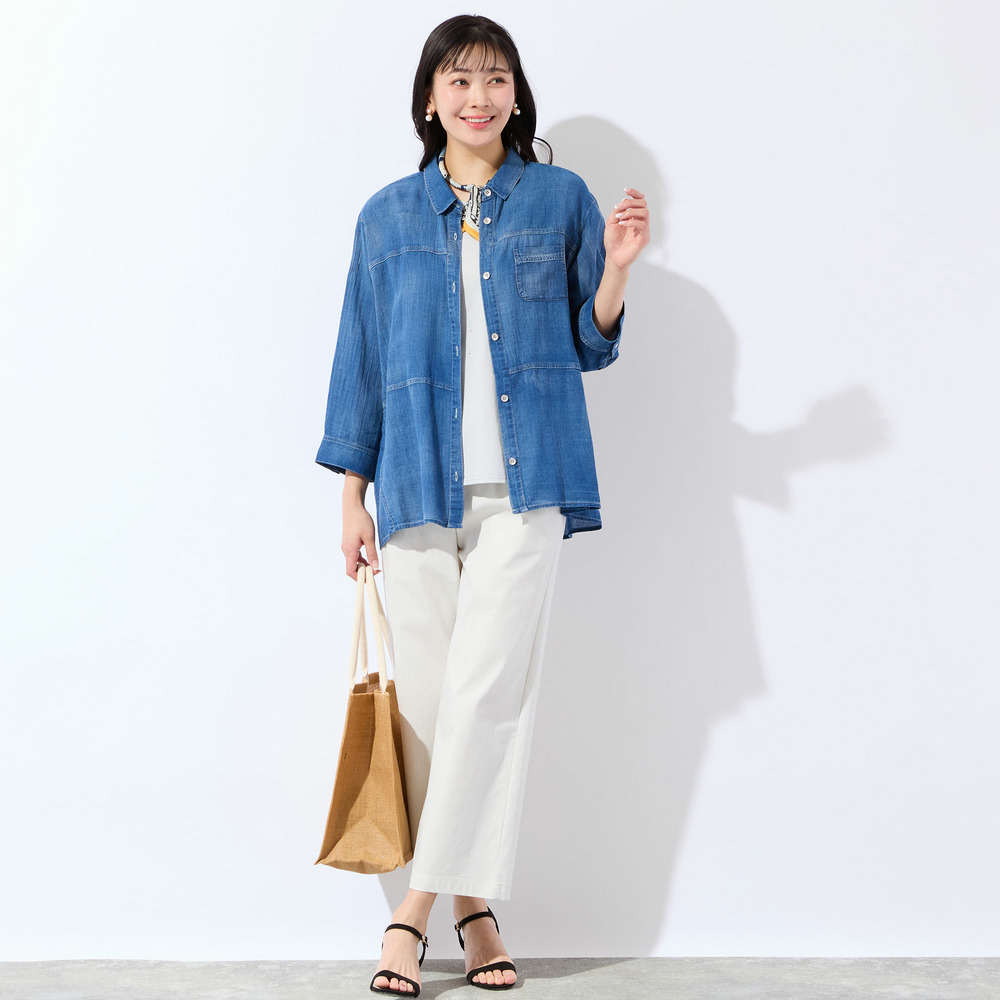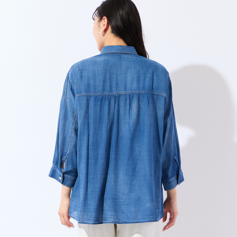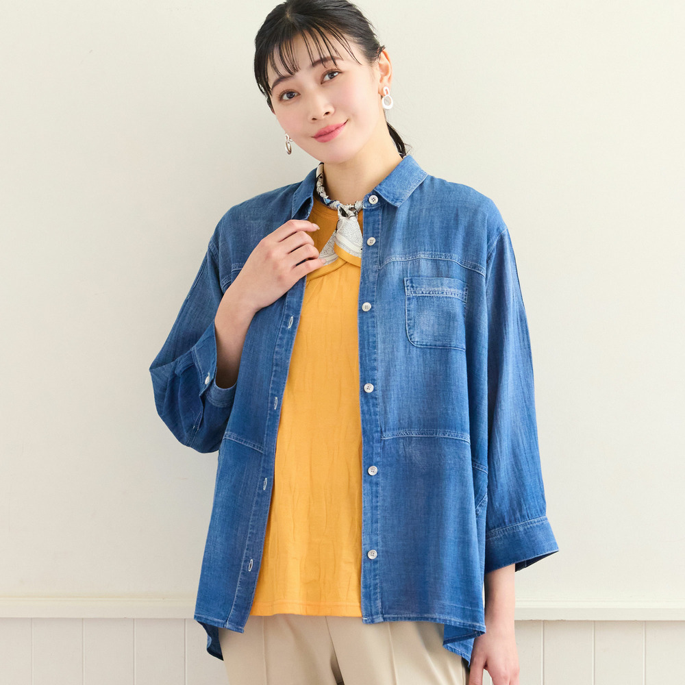 【定番人気・洗える・L~4Lサイズ】デニムガーゼAラインシャツ