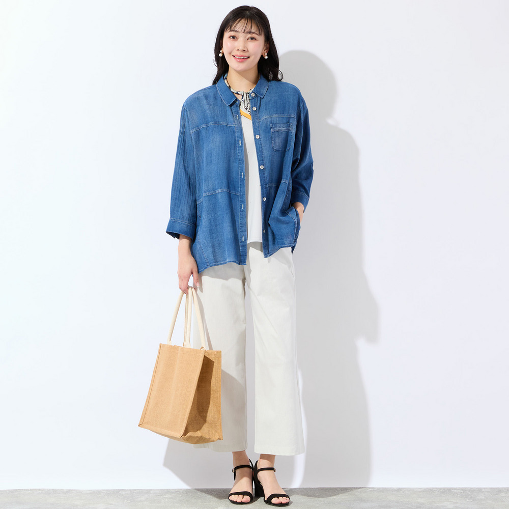 ややドロップした肩周りでリラックス感があり、Tシャツやタンクトップの羽織りにピッタリです。
